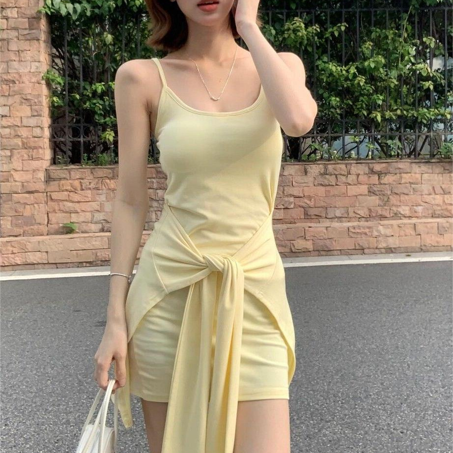 Korean Style Strap Fake Two-piece Spice Girl All-match U-neck Sleeveless Skirt Strap Women’s Summer Fashion Design Sense for dress