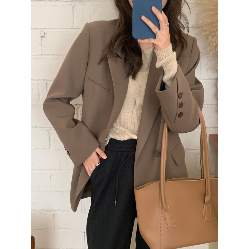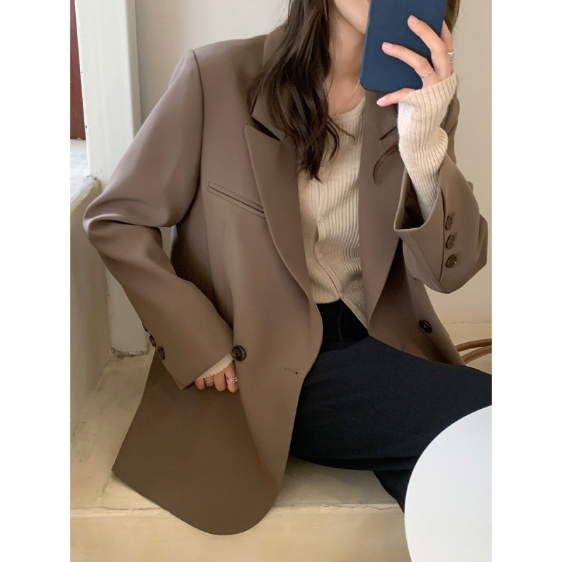 | nameOriginal | Korean style suit jacket for women 2024 spring and autumn high-grade style loose casual all-match coffee color small suit jacket for women |