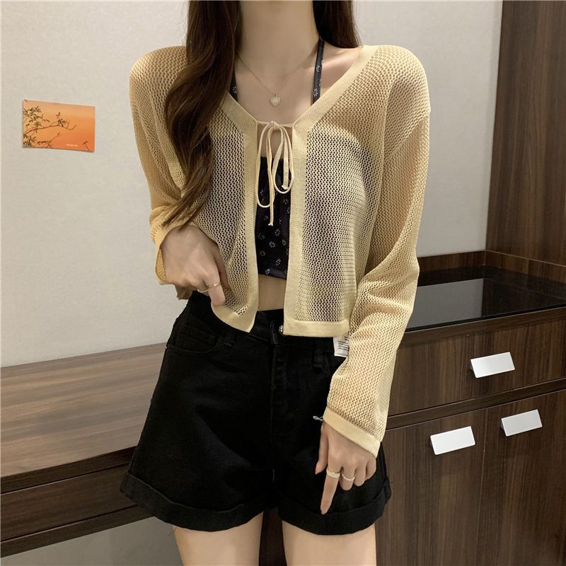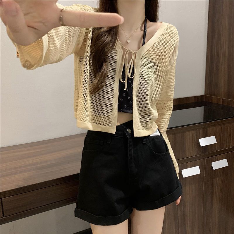 Korean Style Sunscreen Shirt Hollow Knitted Cardigan Women's Summer Thin Loose Ice Silk Air-conditioning Shirt Shawl Casual Top Trendy
