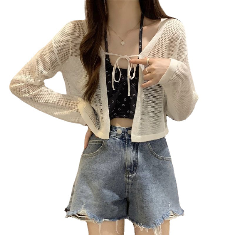 Korean Style Sunscreen Shirt Hollow Knitted Cardigan Women’s Summer Thin Loose Ice Silk Air-conditioning Shirt Shawl Casual Top Trendy
