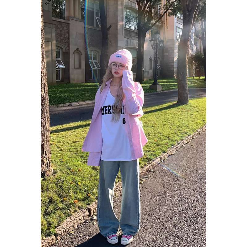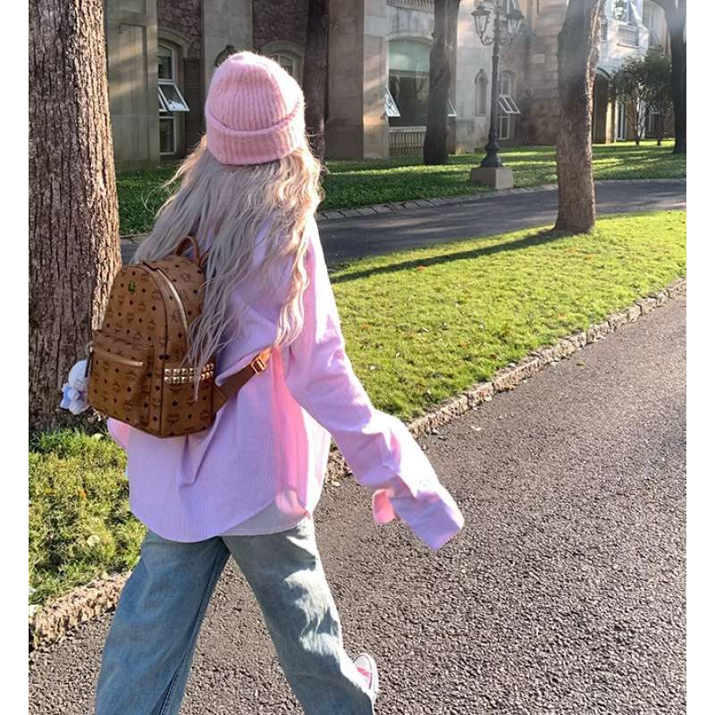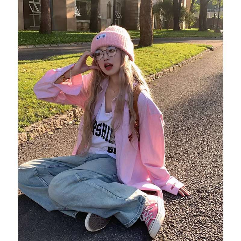 | nameOriginal | Korean Style Sweet Chic Pink Striped Shirt Women's Spring and Autumn Inner Stacked Wear All-match Slim-fit Base Shirt |