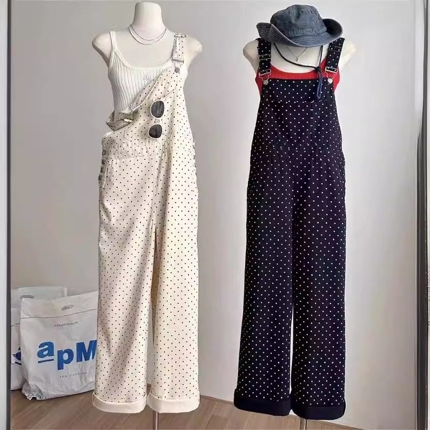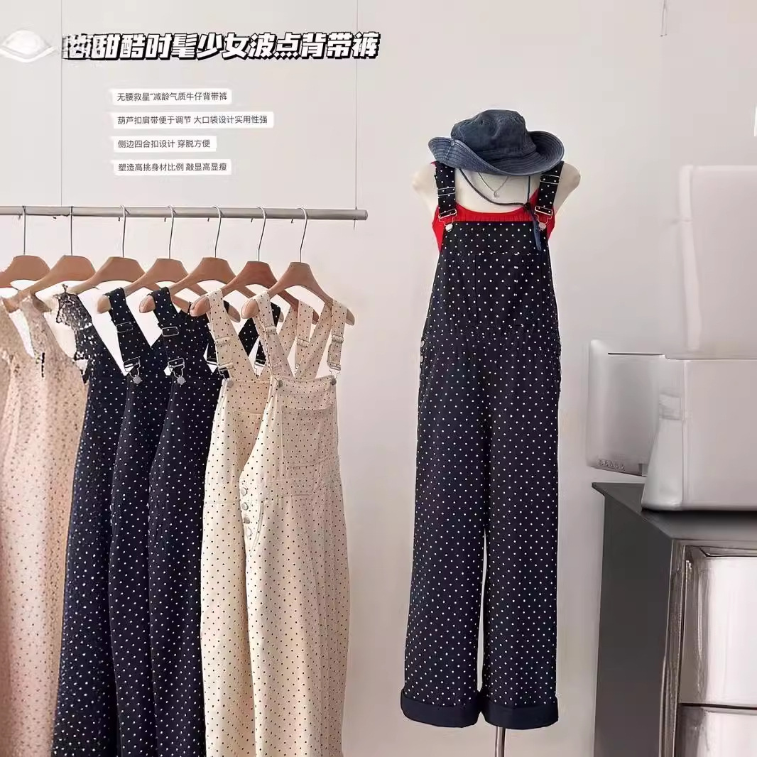 | nameOriginal | Korean Style Sweet Cool Polar Dot Denim Overalls Women's New Arrival Age-reducing Loose Ins Slim-fit Wide-leg Pants |