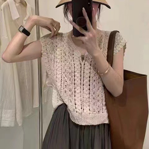 | nameOriginal | Korean Style Sweet Elegant Hand-woven Hollow V-neck Ice Silk Knitted Vest Vest Women's Western Style Pullover Top for Summer |