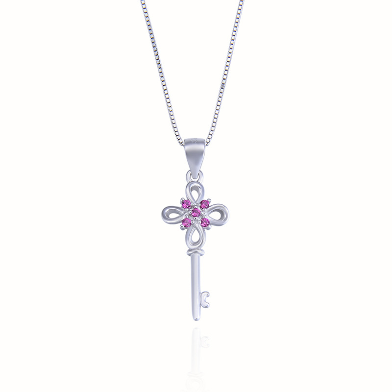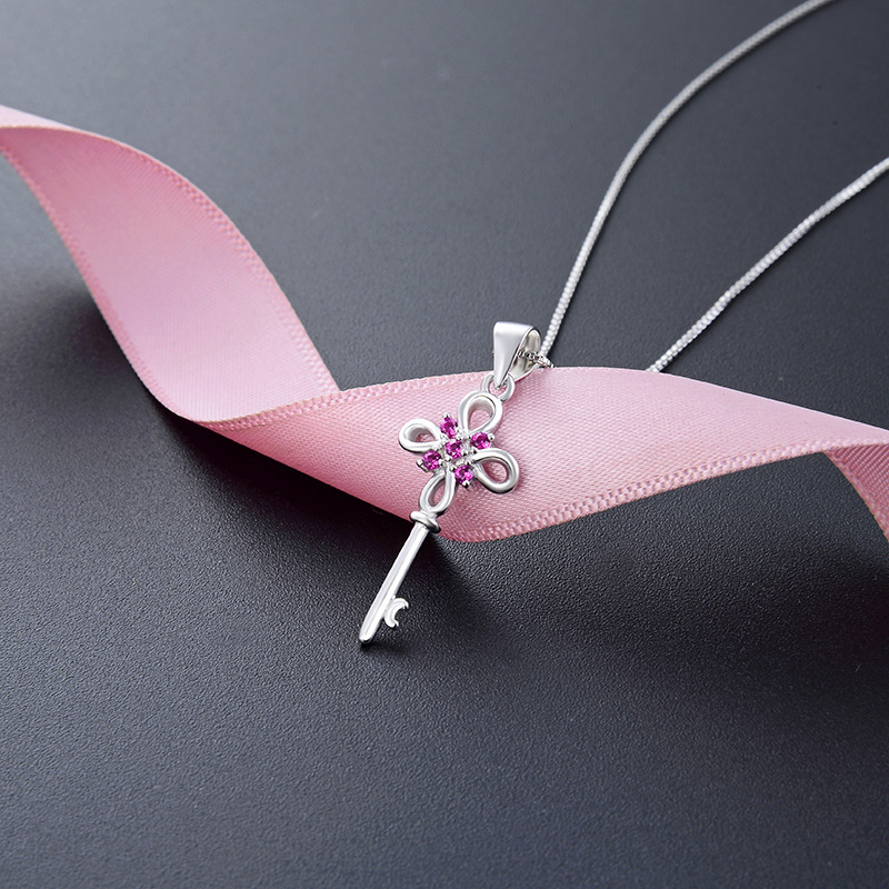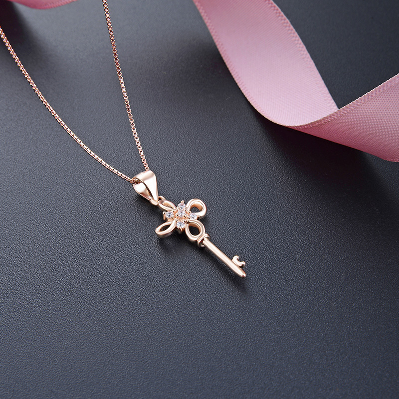 Korean style sweet elegant necklace accessories s925 silver inlaid zircon creative personality Key short clavicle chain pendant for women