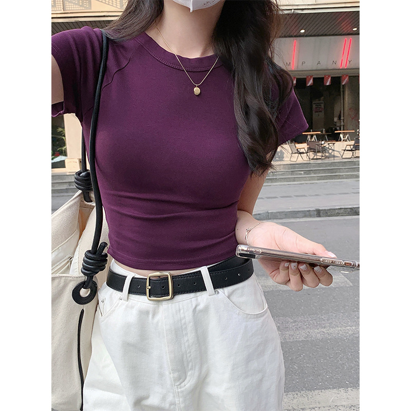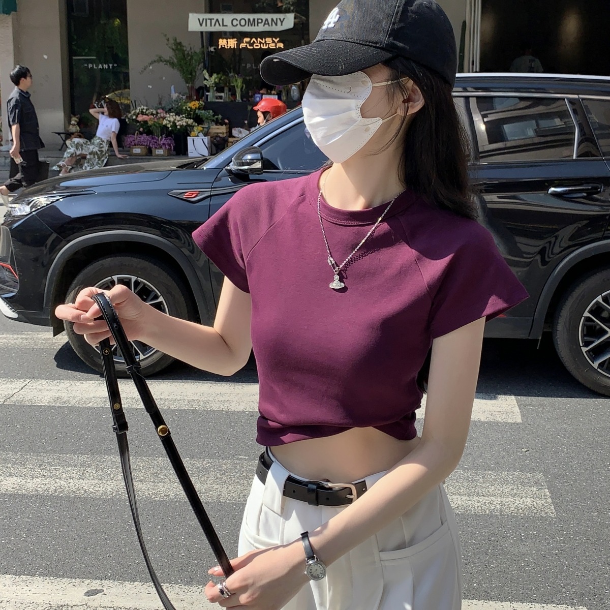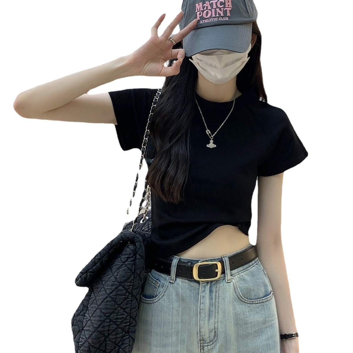 | nameOriginal | Korean style sweet hot girl shoulder slimming cotton T-shirt women's short-sleeved summer pure short short tight top ins |