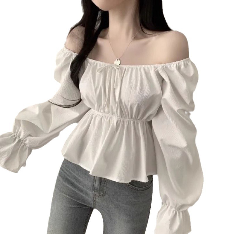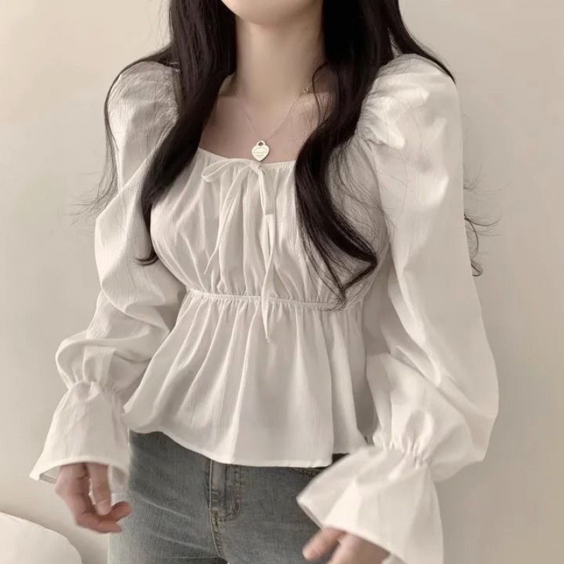 | nameOriginal | Korean Style Sweet Pleated Square Collar Shirt Women's 2023 Early Autumn New Tight Waist Slimming Trumpet Sleeve Long Sleeve Top |