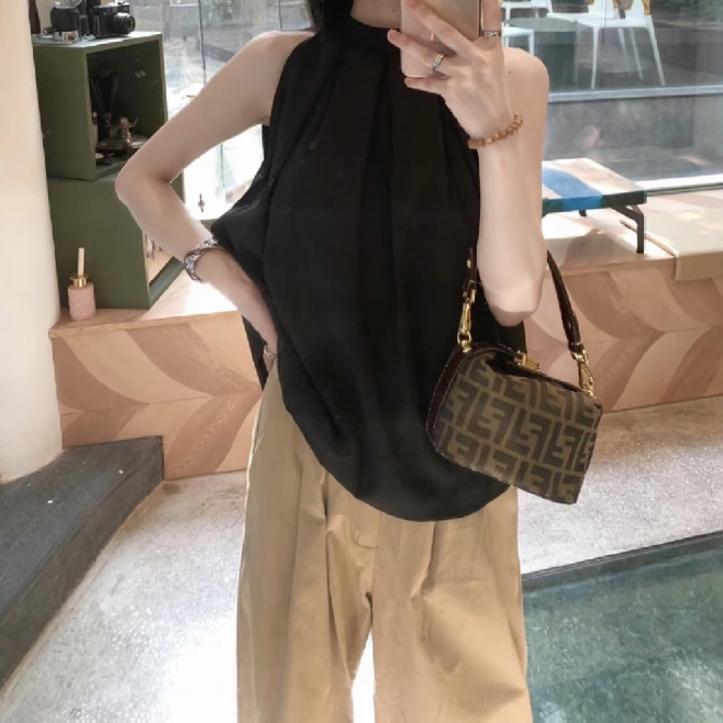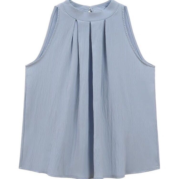 | nameOriginal | Korean Style Sweet Sleeveless Neck Hanging Shirt Design Sense Niche Pleated Top Simple Elegant Fashion All-match T-shirt Summer |
