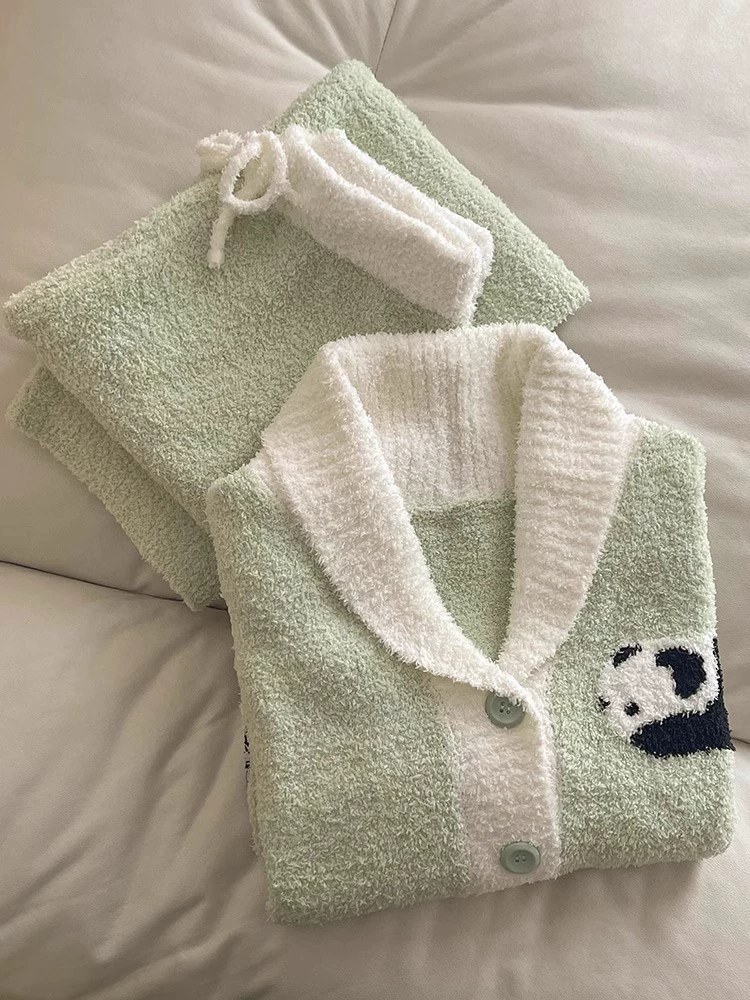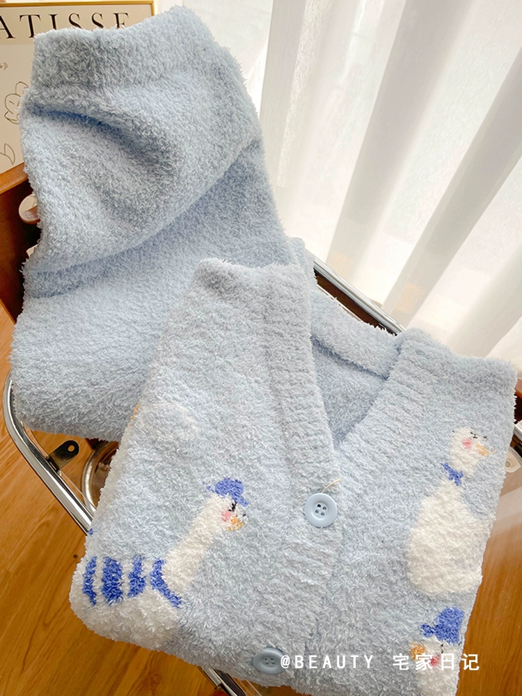 Korean style sweet soft and waxy half velvet women’s warm pajamas