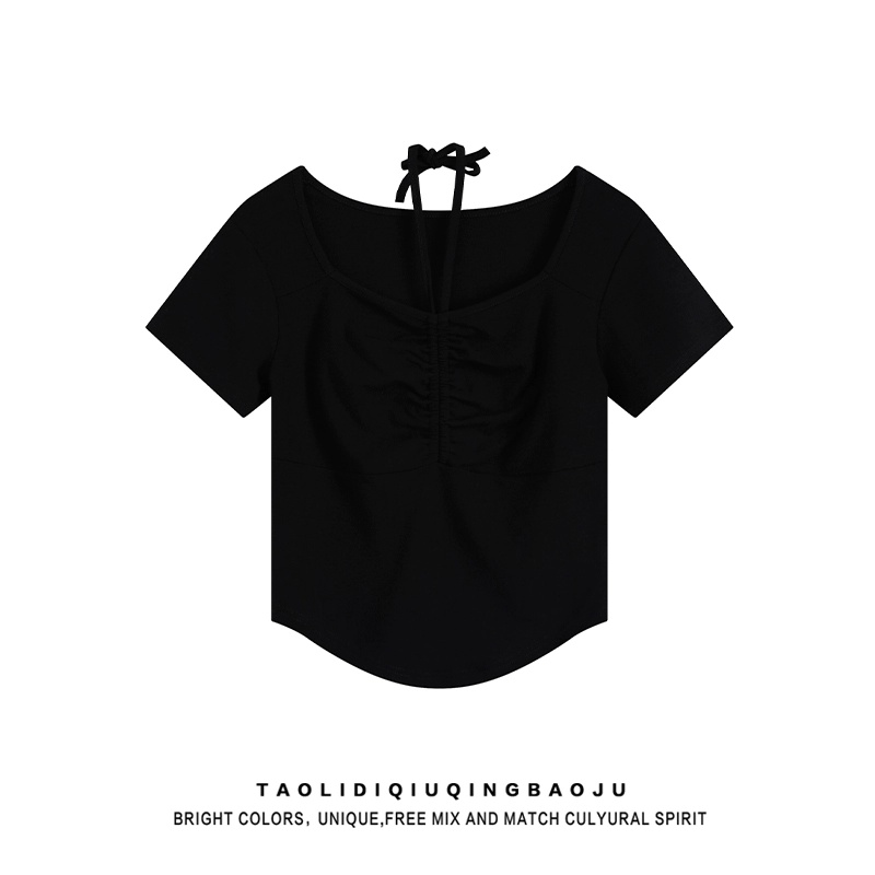 | nameOriginal | Korean style sweet solid color square neck short sleeve slimming halter neck |