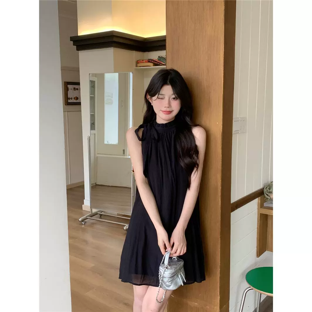 | nameOriginal | Korean style temperament stand collar strap summer casual dress |