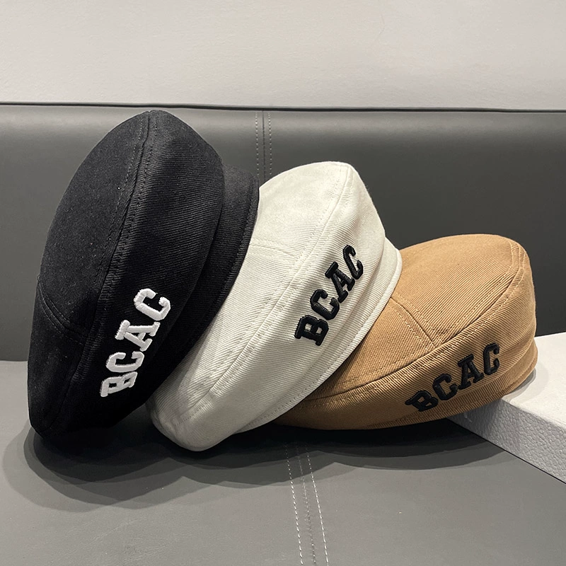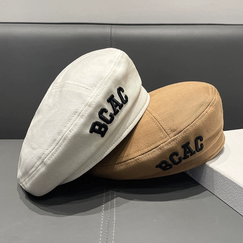 Korean style three-dimensional embroidered letters simple beret hat for women autumn and winter British retro face-showing little bud painter hat