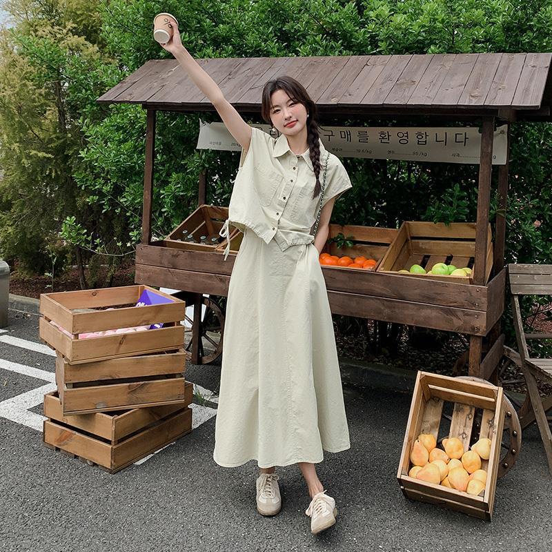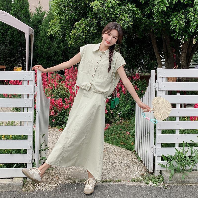 | nameOriginal | Korean Style Tooling Dress Women's Summer 2024 New Design Sense Niche Casual Skirt Salt Style Wear a Complete Set |