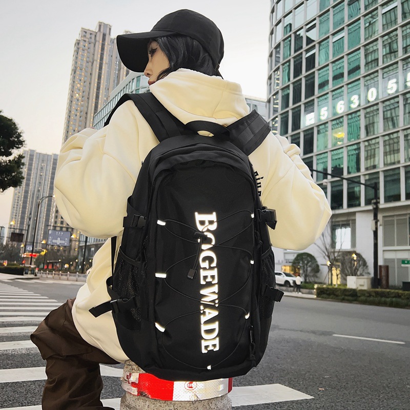 | nameOriginal | Korean style trendy cool couple backpack large capacity reflective letter printing backpack outdoor travel computer schoolbag cross-border |