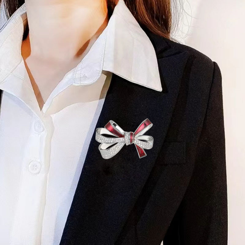 Korean-style Trendy Enamel Bow Brooch Women’s Niche Exquisite Suit Collar Corsage Anti-glare Pin Accessories