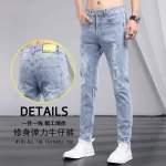 | nameOriginal | Korean style trendy light-colored jeans for small feet in summer with holes |