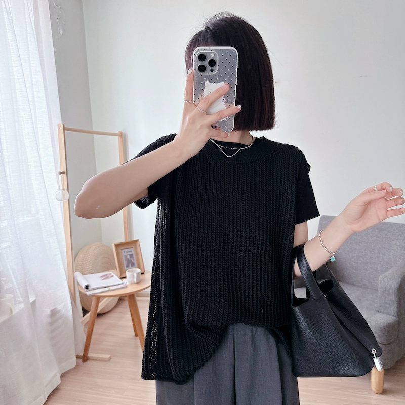 | nameOriginal | Korean style versatile solid color hollow sleeveless sweater top summer lazy style casual layered round neck vest blouse |