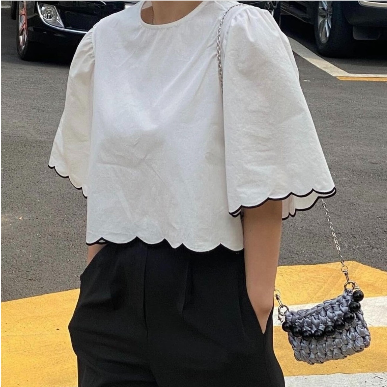| nameOriginal | Korean style wavy edge puff sleeve top with embroidery |