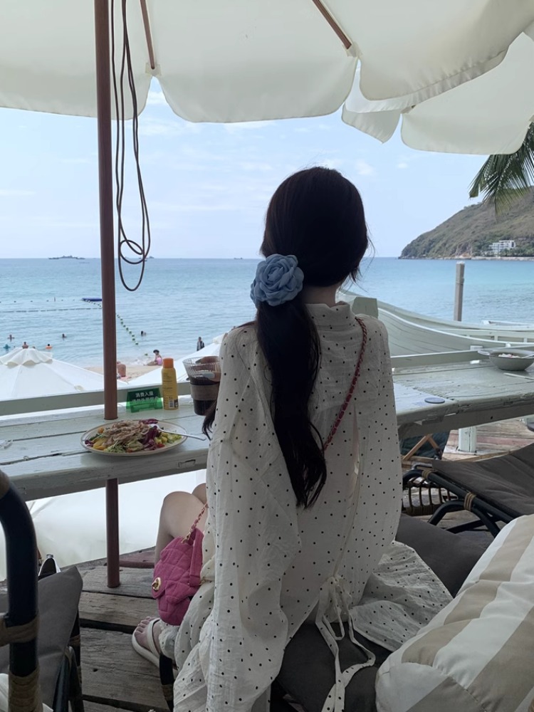 | nameOriginal | Korean Style Wearing White Polka Dot Long-sleeved Shirt Women's Summer Design Sense Split Shirt Thin Sunscreen Coat Top |