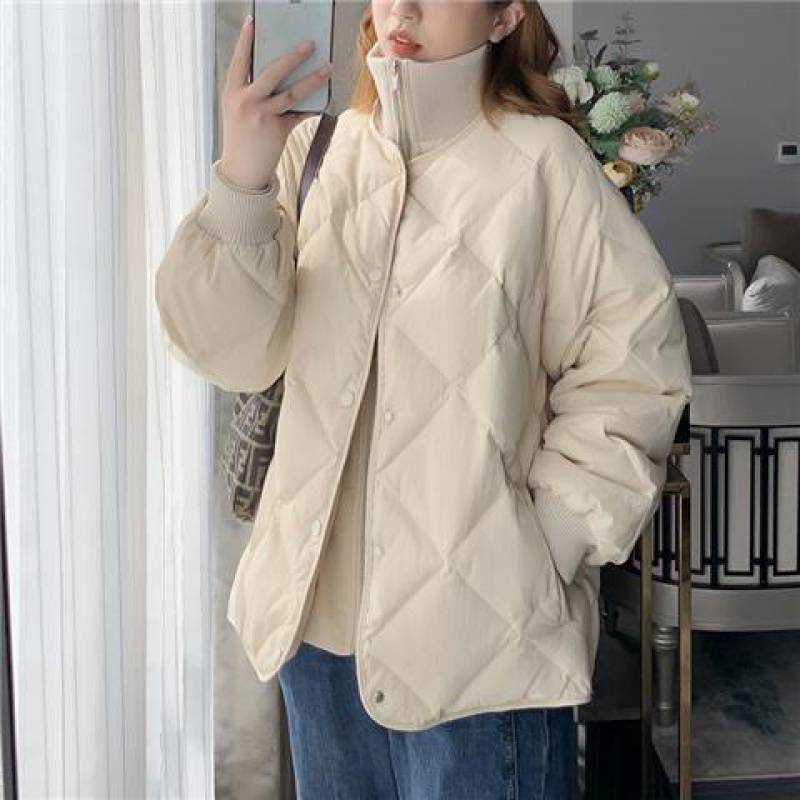 Korean style western style stitching loose down jacket women’s small Winter new lightweight short thickened white duck down jacket