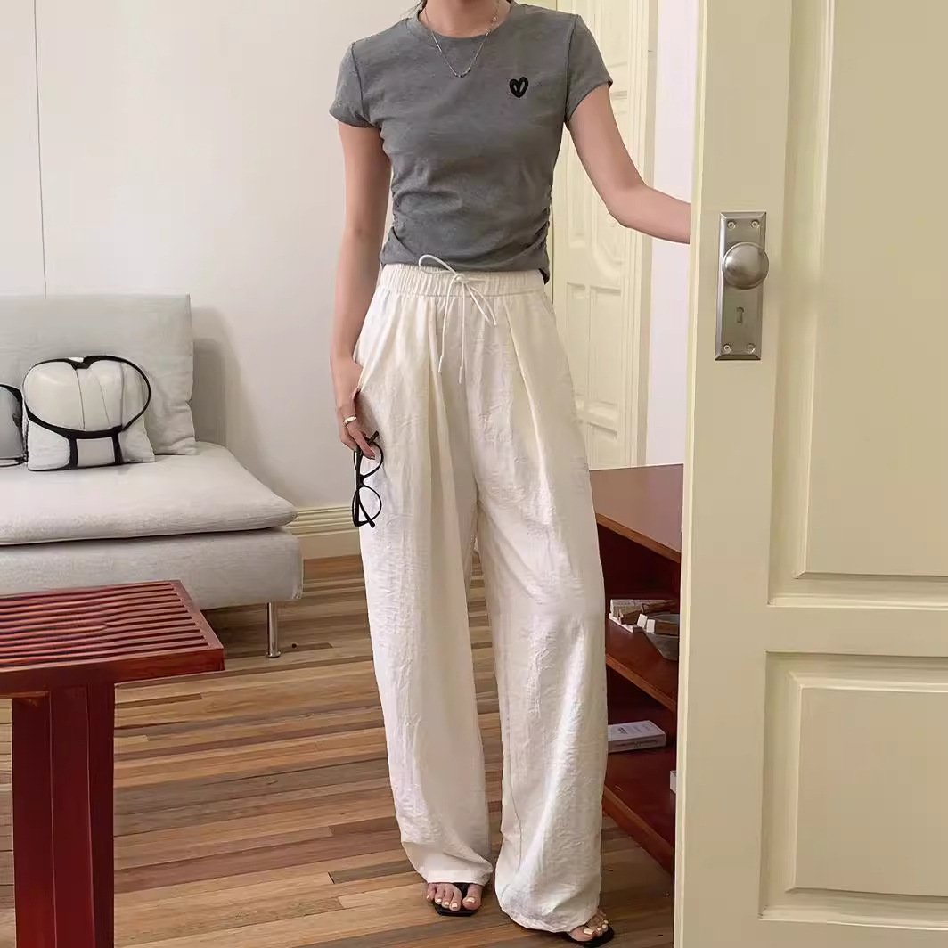 | nameOriginal | Korean-style White Wide-leg Pants New Slim-looking Summer Thin Lazy Comfortable Straight-tube Hanging Pants for Women |
