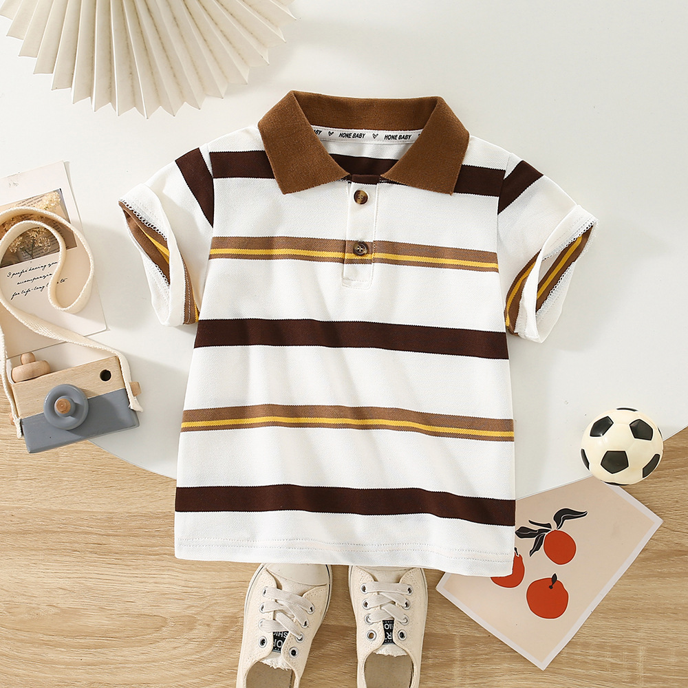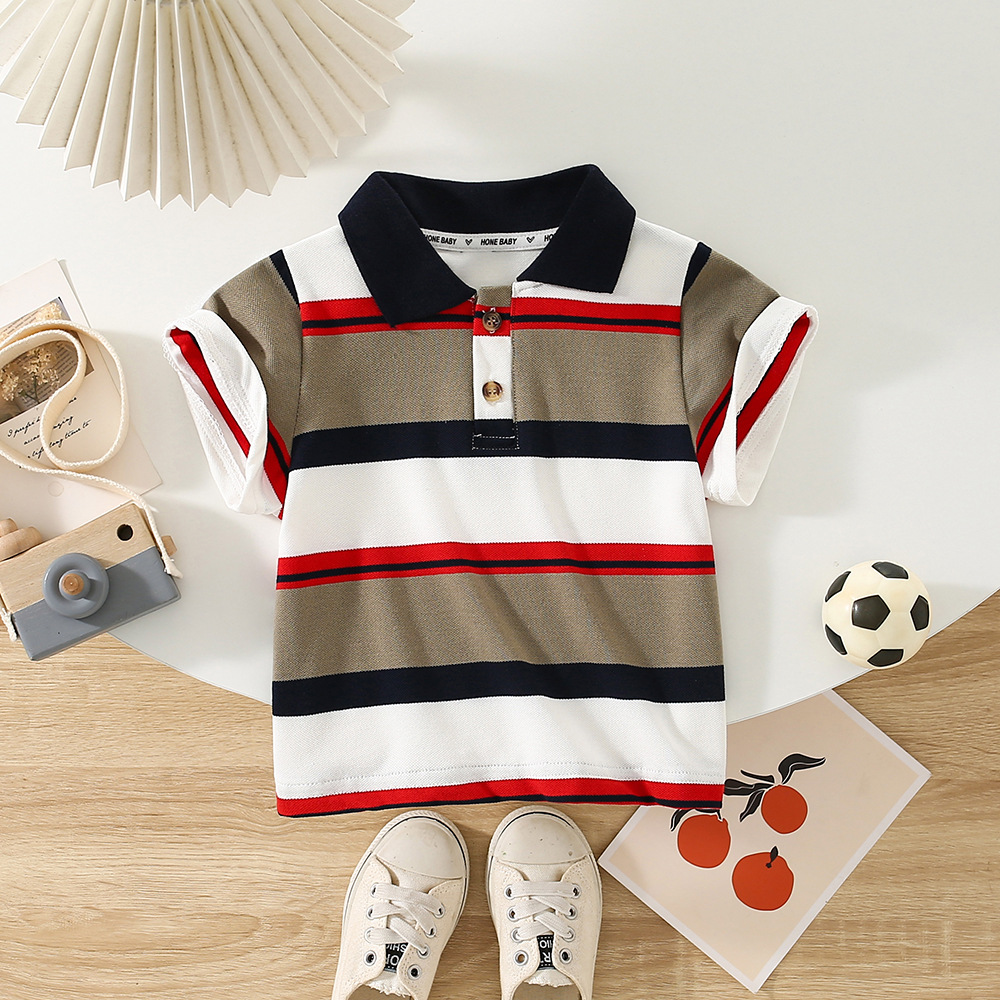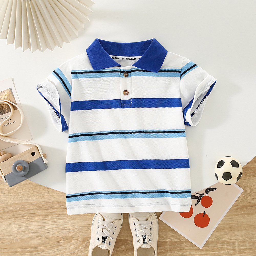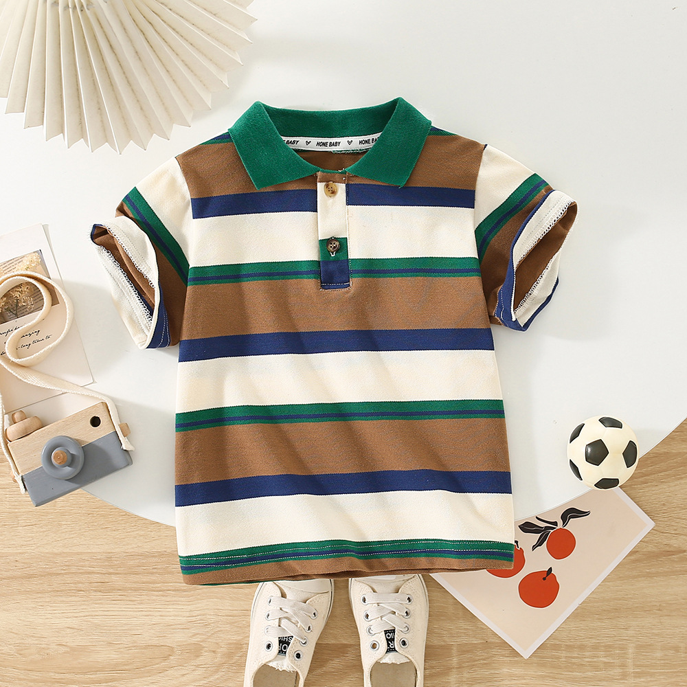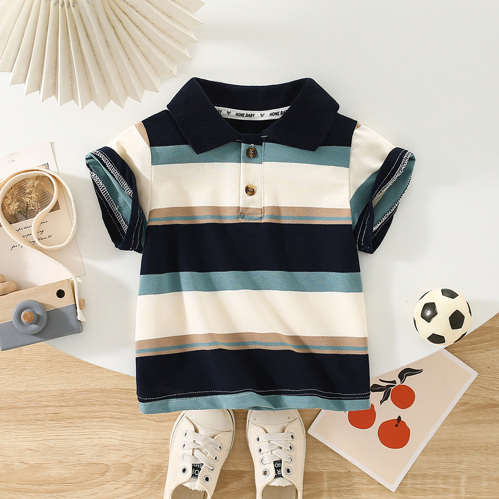 | nameOriginal | Korean Style Wide Shoulder Short-sleeved T-shirt 2024 New Summer Wear Boys Striped Polo Shirt Baby Business Short-sleeved Top Trendy |
