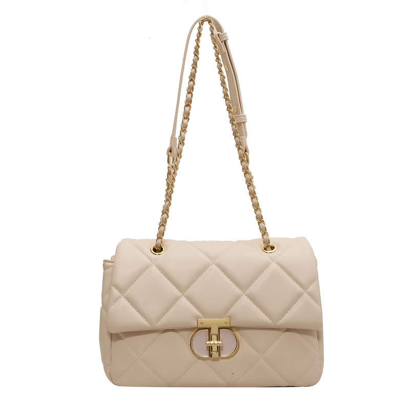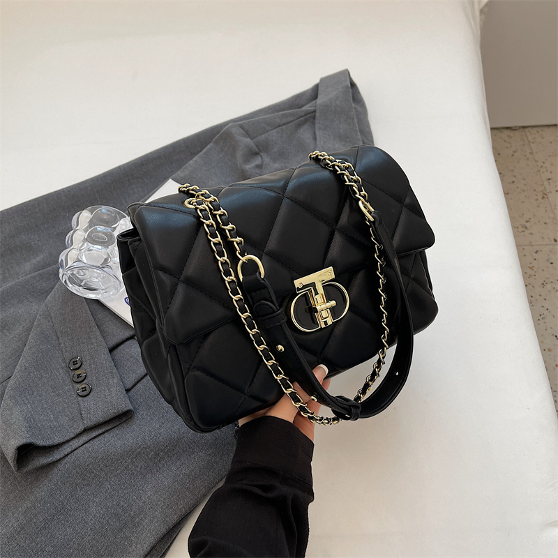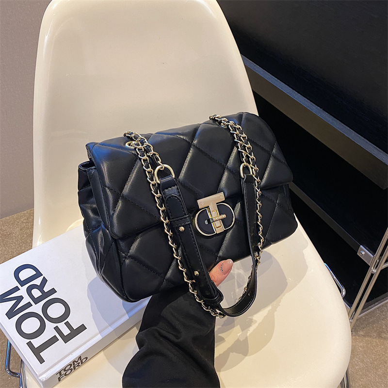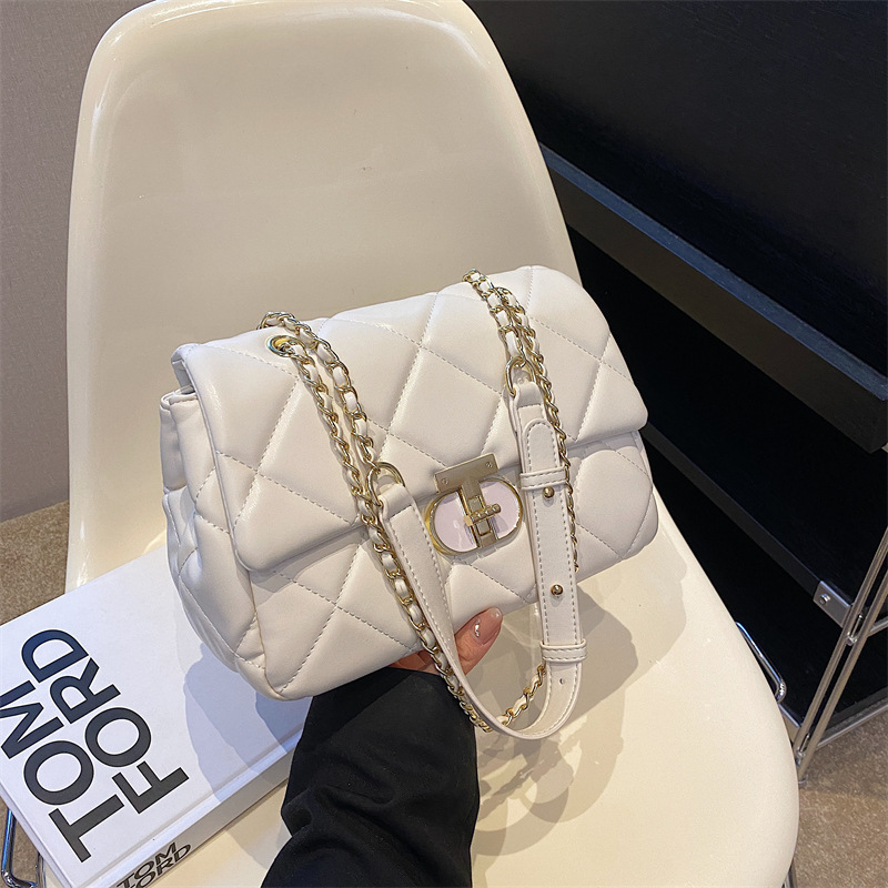 Korean style women’s bag 2023 new fashion chain messenger bag simple western style rhombus embroidery thread fashion small square bag
