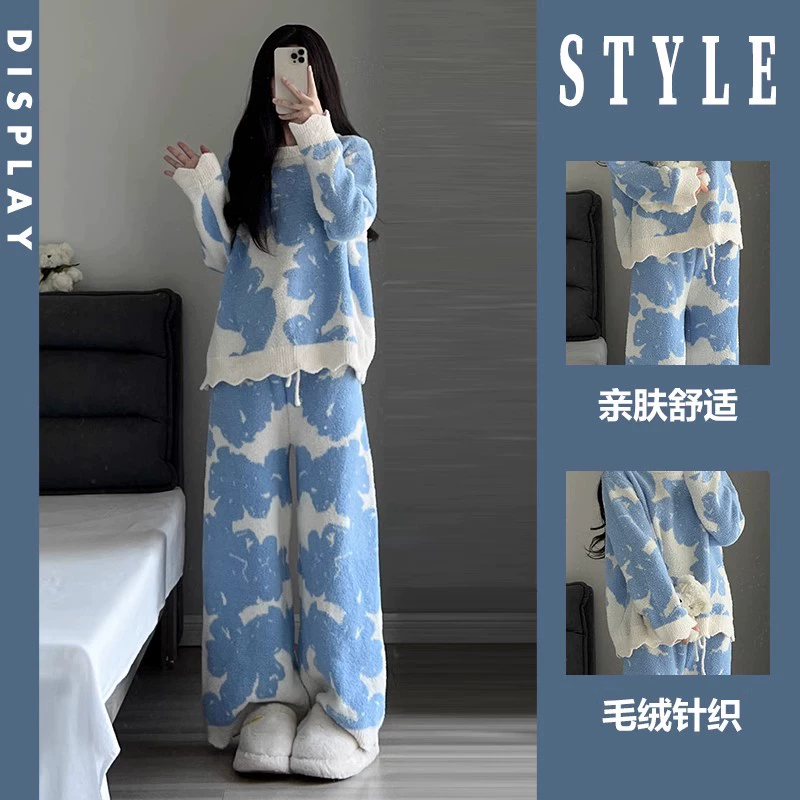 | nameOriginal | Korean style women's plus size plus size contrasting color knitted long-sleeved pajamas |