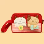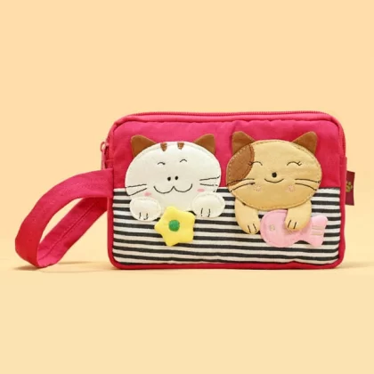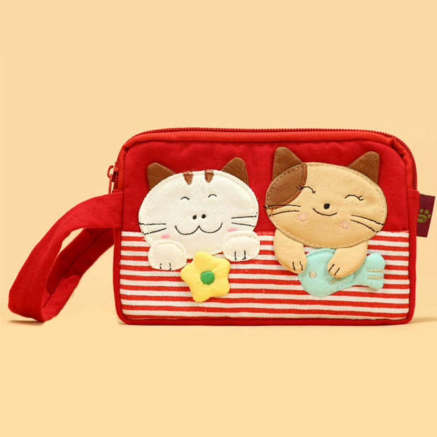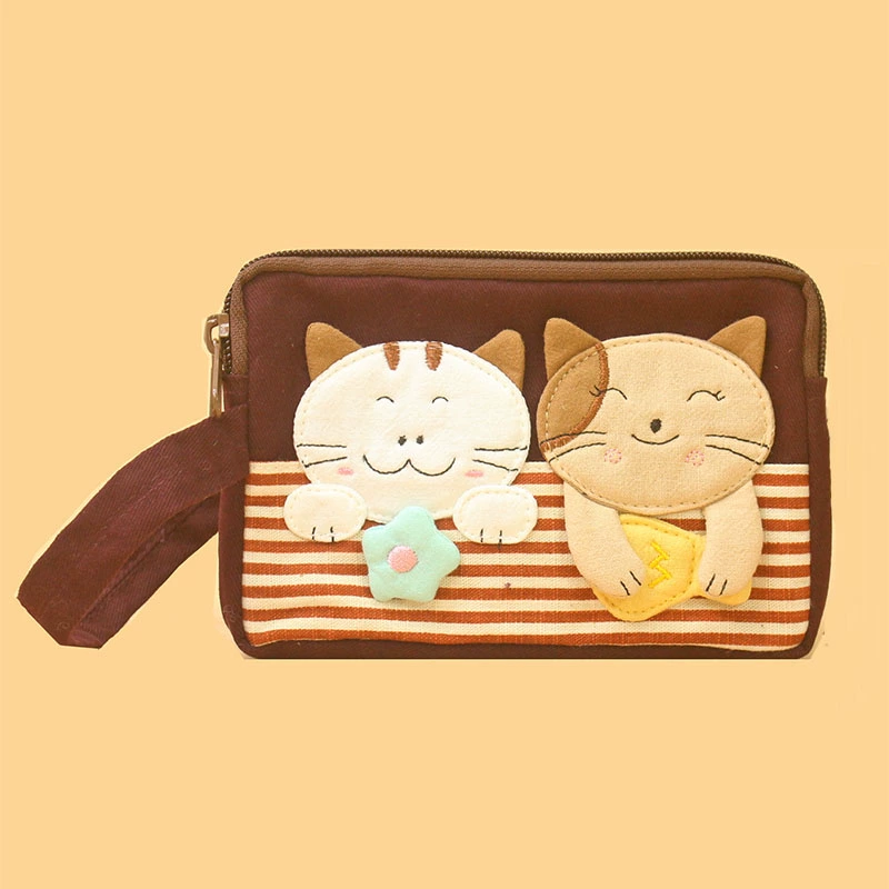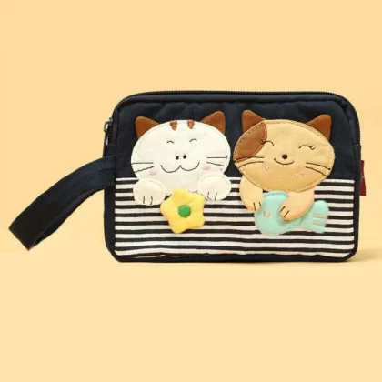 | nameOriginal | Korean style women's striped patchwork cat three-layer large capacity pure cotton wallet large screen mobile phone bag zipper clutch bag |