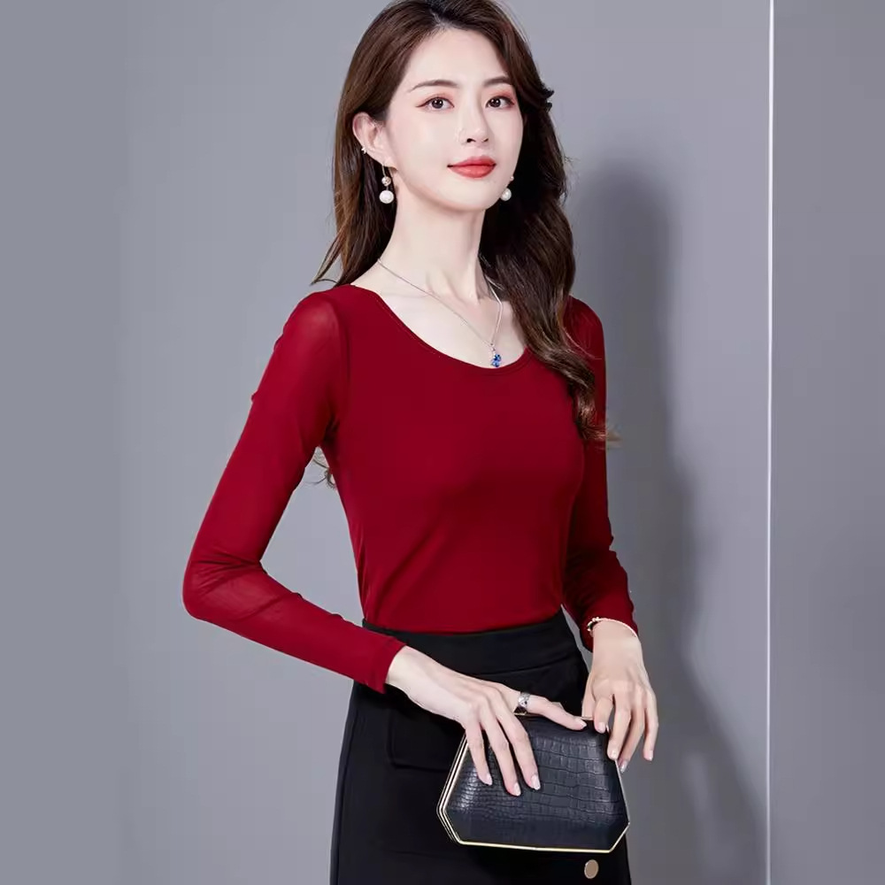 | nameOriginal | Korean style women's top half sleeve t-shirt women's 2021 Spring and Autumn new solid color basic round neck mesh bottoming shirt |