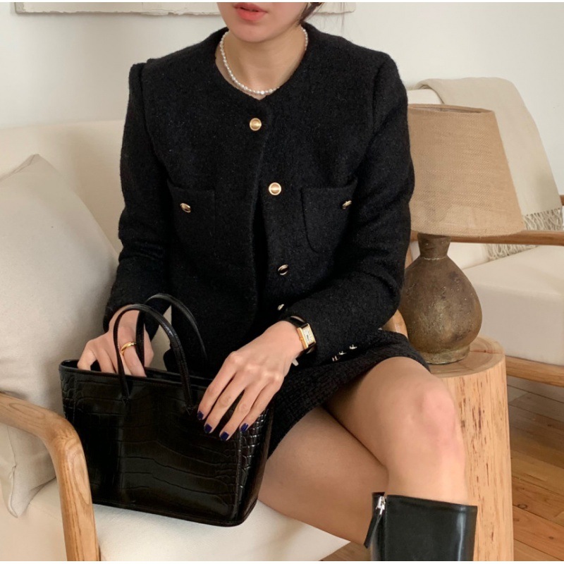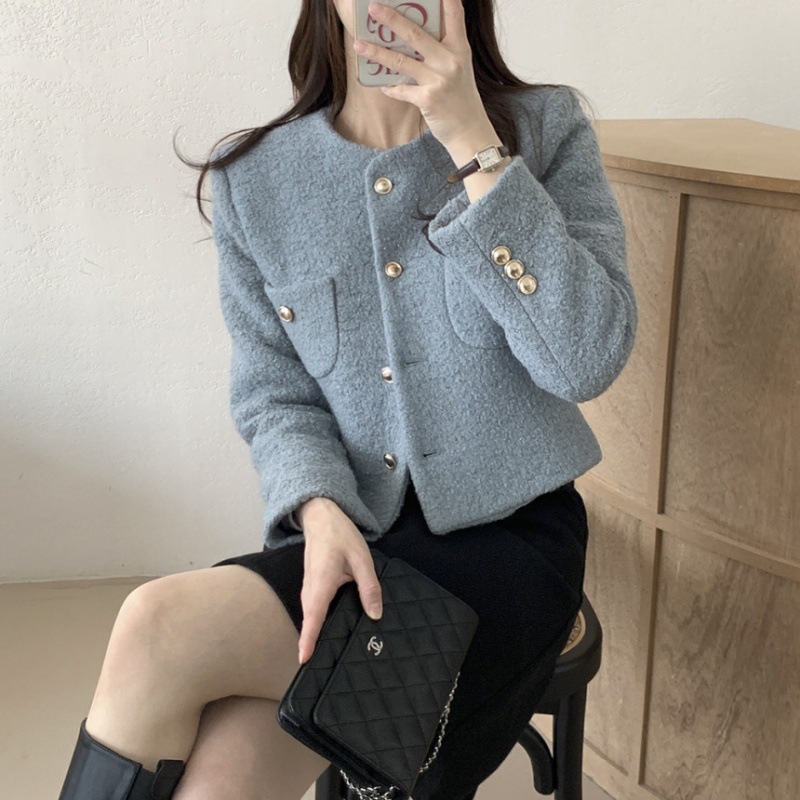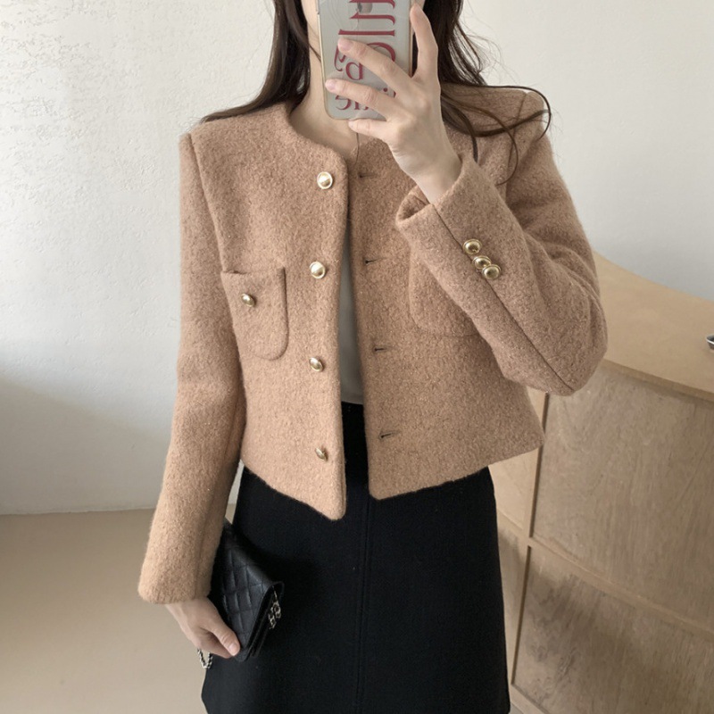 | nameOriginal | Korean style woolen coat 2023 autumn and winter New elegant commuter Chanel style small solid color cardigan outer top |