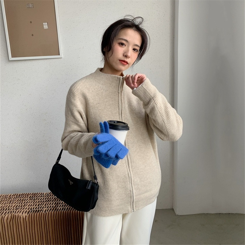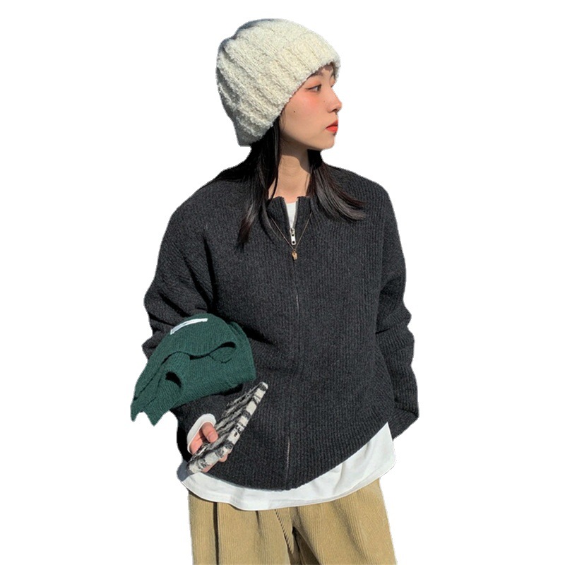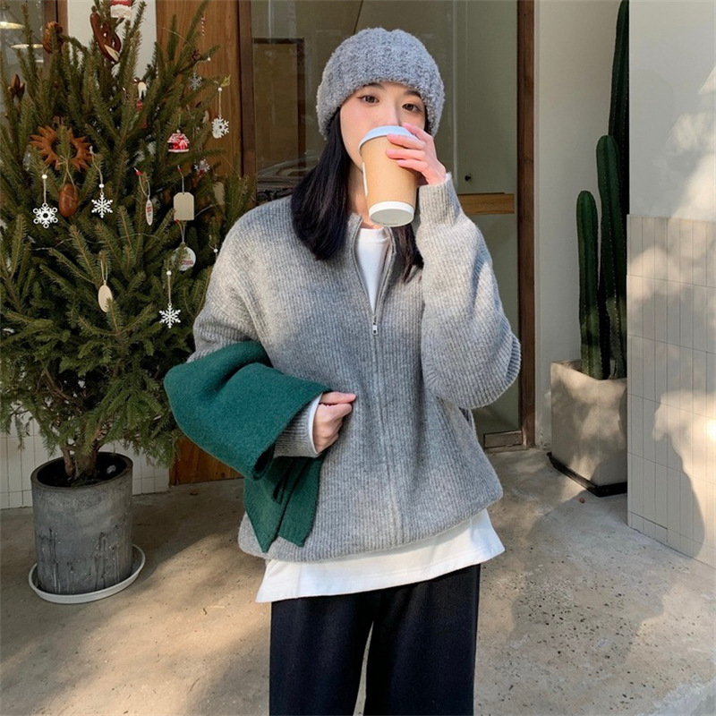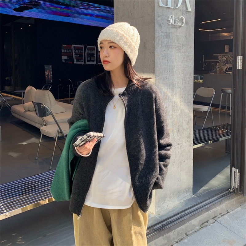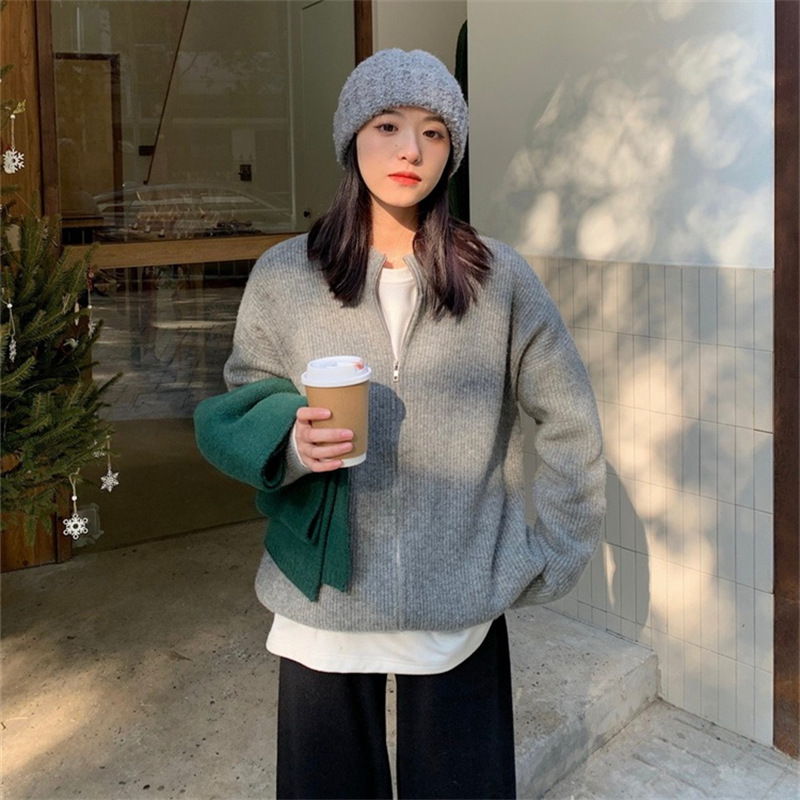 | nameOriginal | Korean Style Zipper Solid Color Sweater Knitted Cardigan Women's 2022 Autumn New bf Lazy Casual Loose Coat Top |
