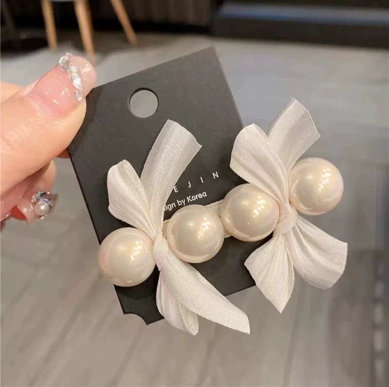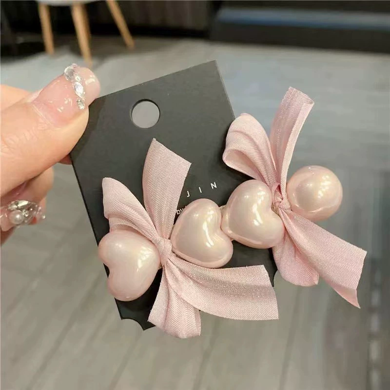 Korean Chaoxian Pink Pink Fritillaria Pearl Bowing Pearl Hair Fringers Sweet Bangs Picking Duck Both Milk Mubing hair accessories