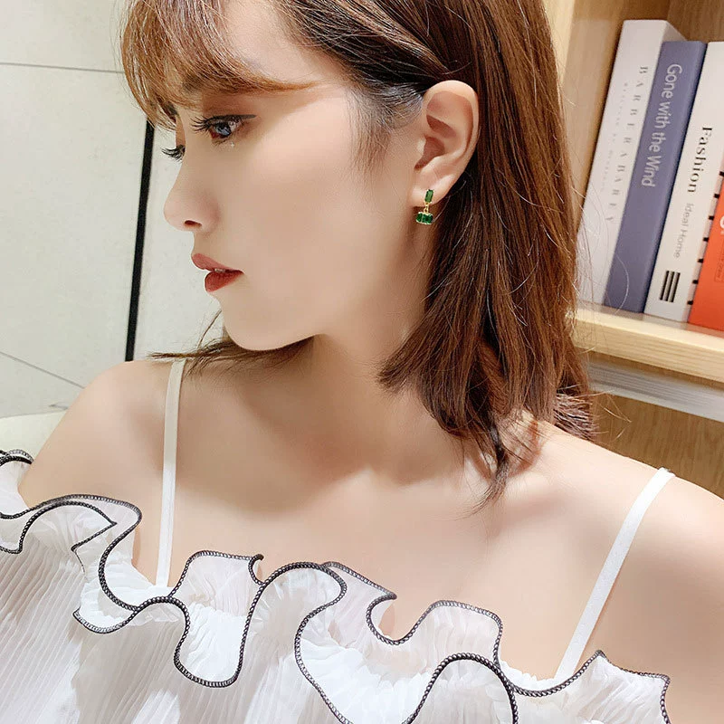 | nameOriginal | Korean temperament 925 silver needle emerald earrings, fashionable light luxury celebrity earrings, forest style retro high-end earrings |