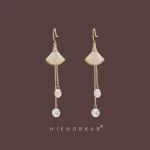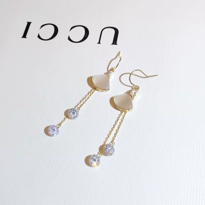 | nameOriginal | Korean temperament long earrings 2022 new trend imitation cat's eye stone fan-shaped zircon earrings design ear hooks |