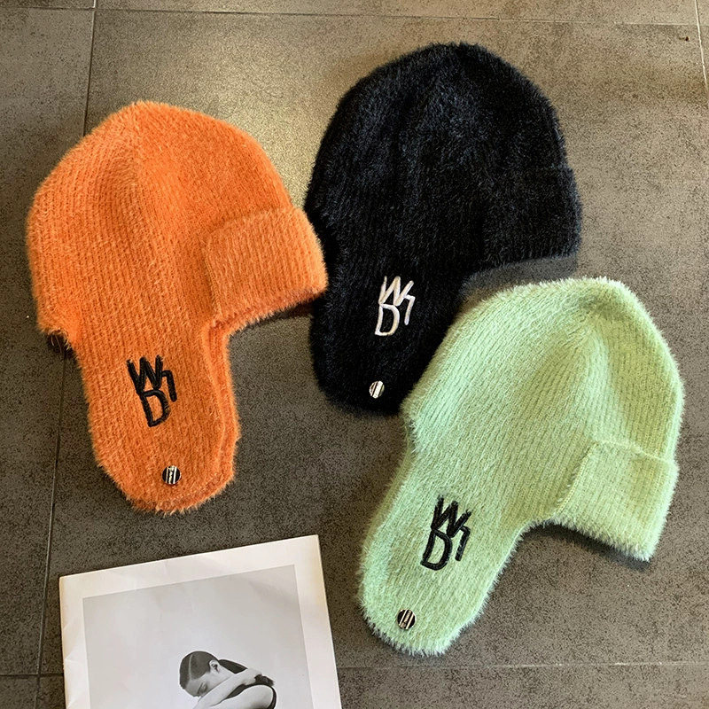 | nameOriginal | Korean trendy green flying hat for women in winter, warm and windproof ski thunder hat, knitted ear protection hat for men and women |