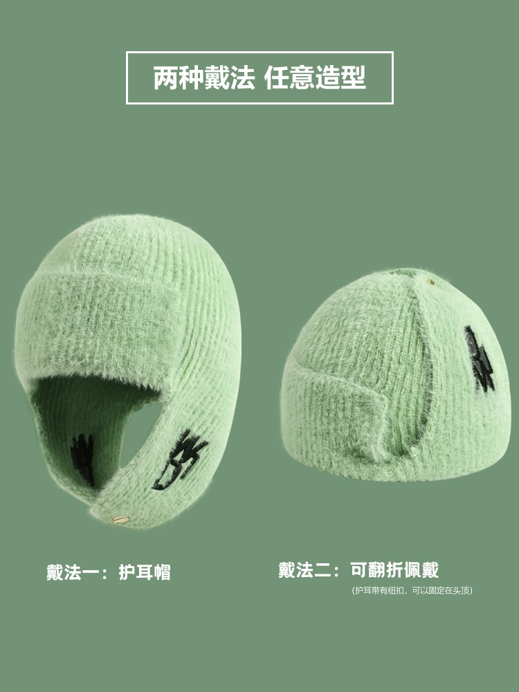 | nameOriginal | Korean trendy green flying hat for women winter warm cycling and skiing Lei Feng hat knitted ear protection woolen hat |