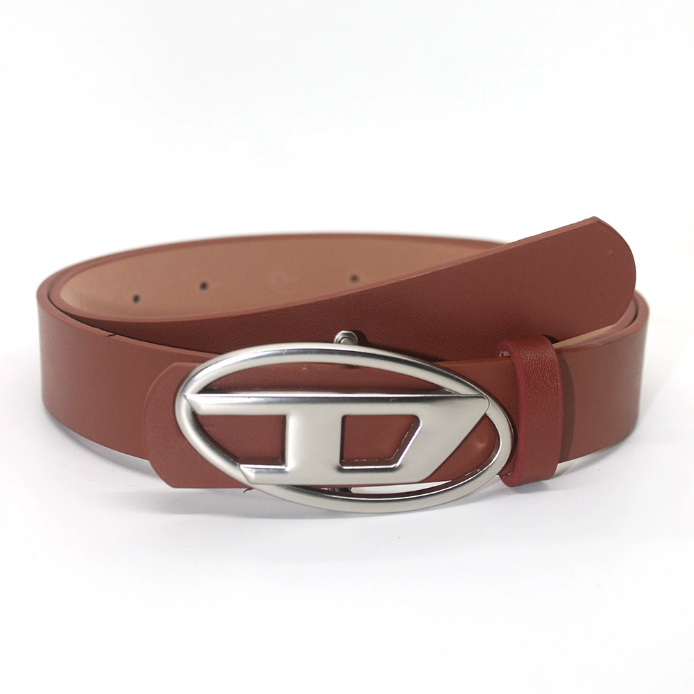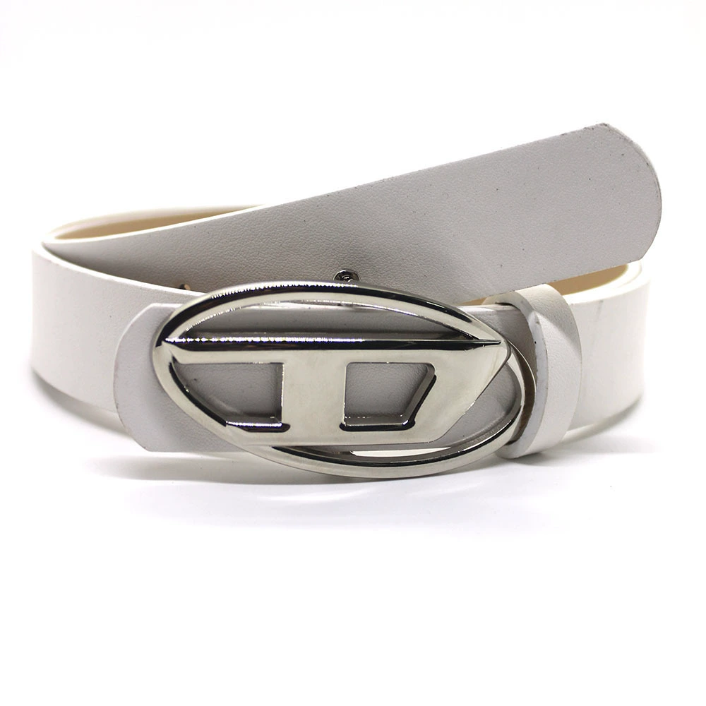 Korean trendy new D letter oval metal snap buckle for men and women, versatile decorative belt, fashionable with jeans