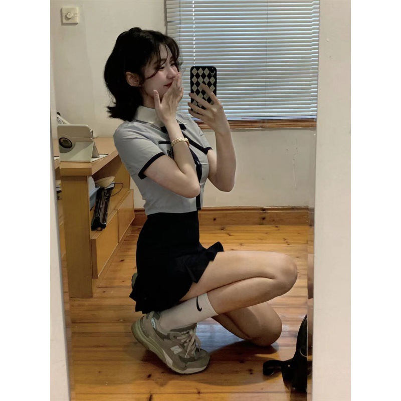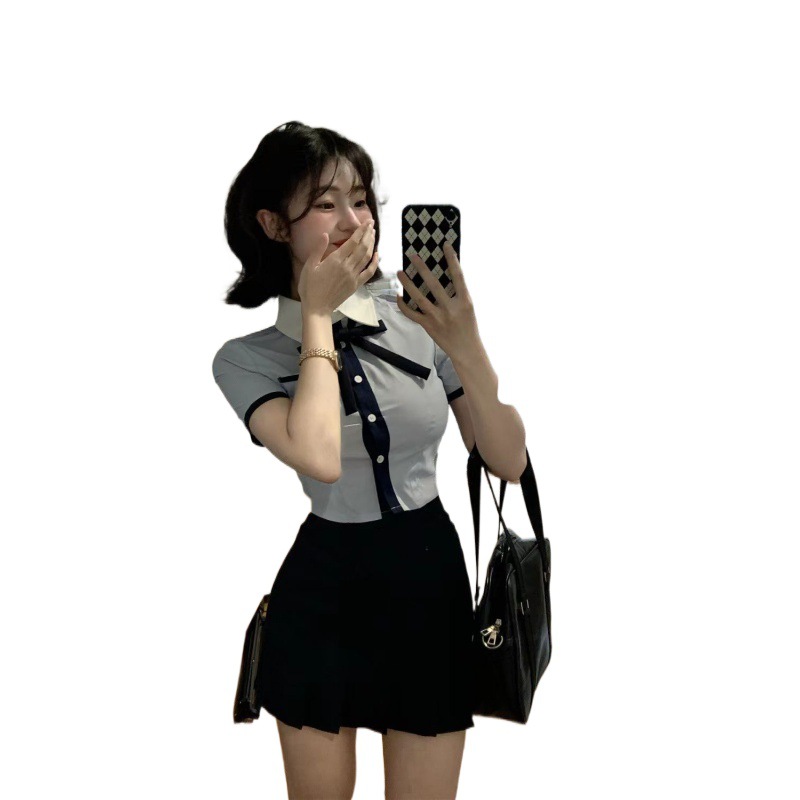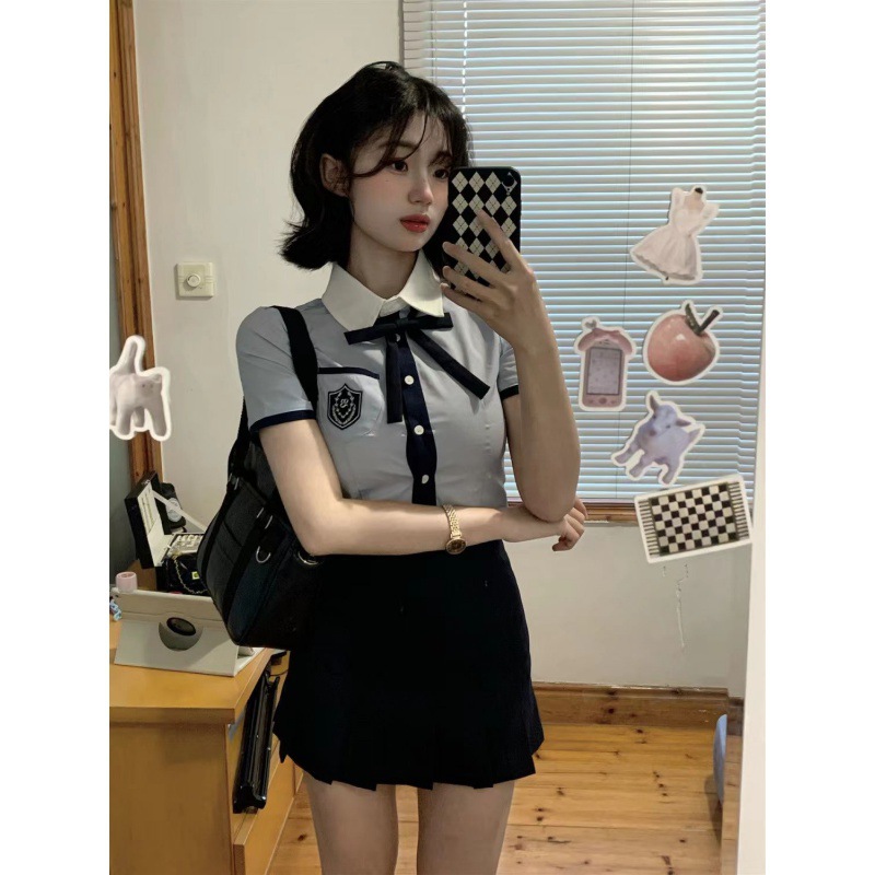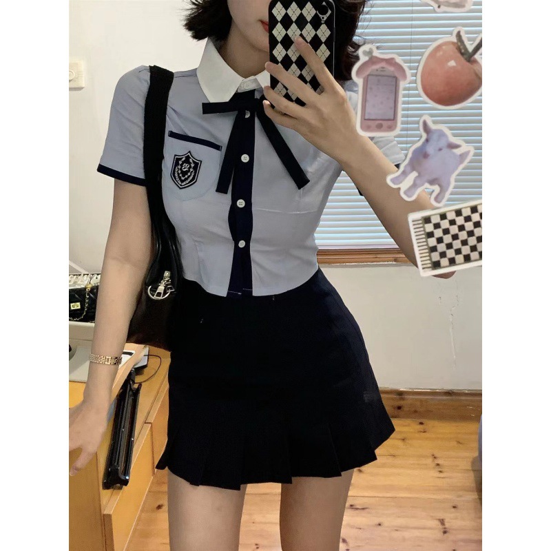 | nameOriginal | Korean Uniform British Summer College Style School for Blue Shirt Small Shown High Two-piece Junior Girl Dress Female |