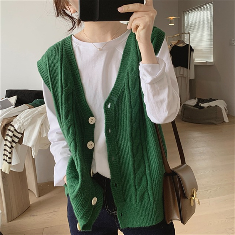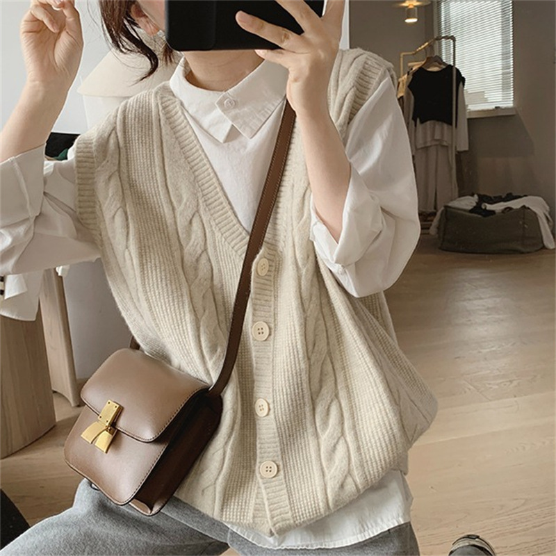 | nameOriginal | Korean V-Neck Stacked Knitted Vest Top Women's Spring and Autumn Loose Lazy Design Niche Sleeveless Cardigan Sweater |