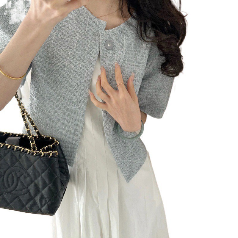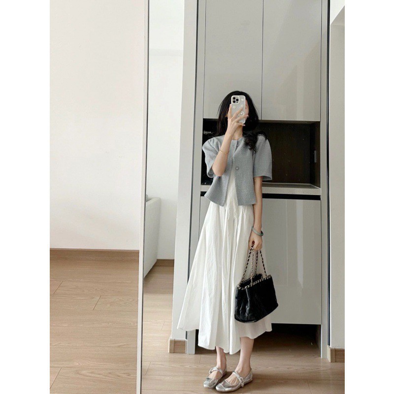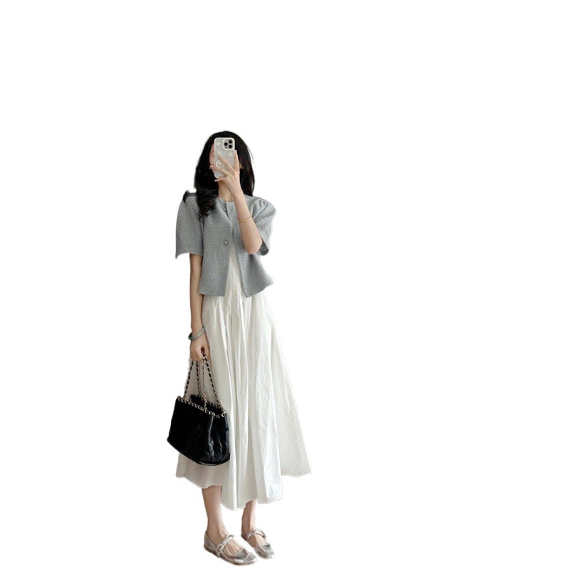 | nameOriginal | Korean Versatile Round Neck Two-button Loose Short Cardigan Slub Jacket White Vest Dress Two Pieces Ye |