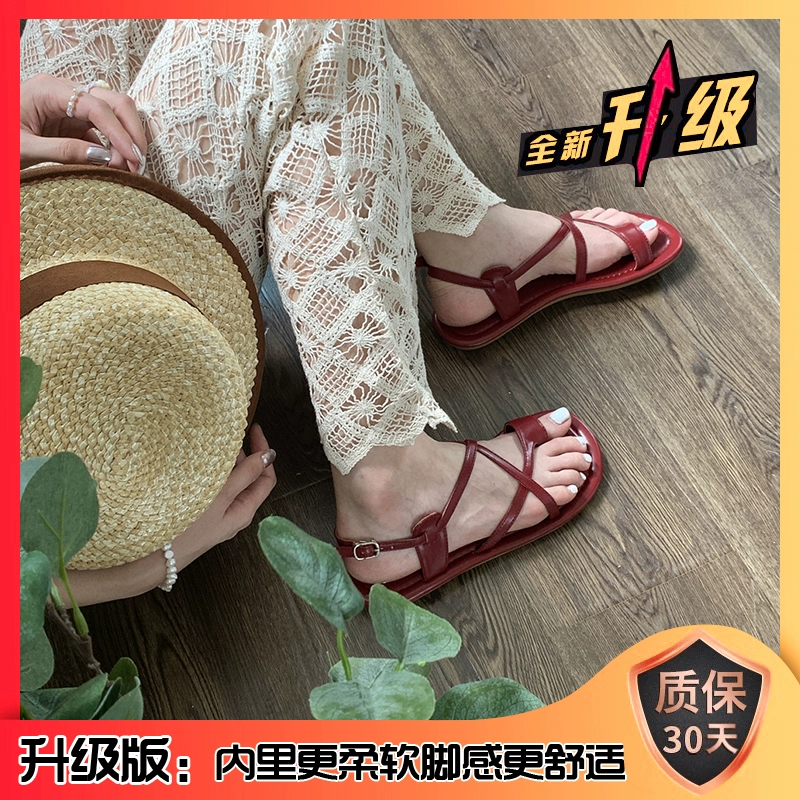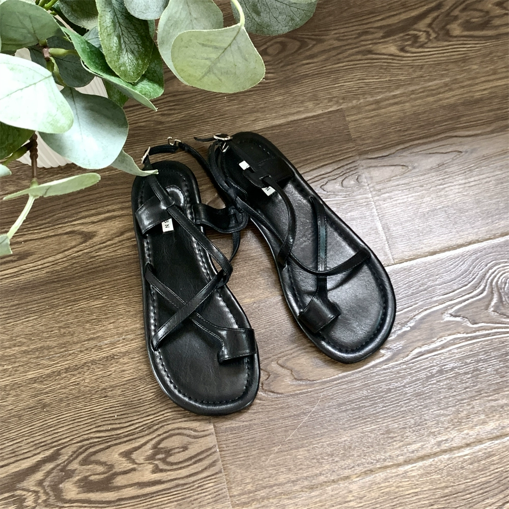 Korean version 2024 new summer flat-soled thong-toe one-word buckle sandals for women French retro Roman shoes