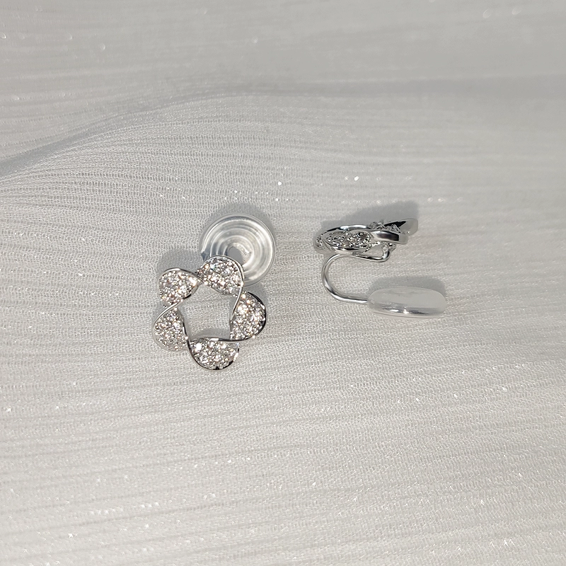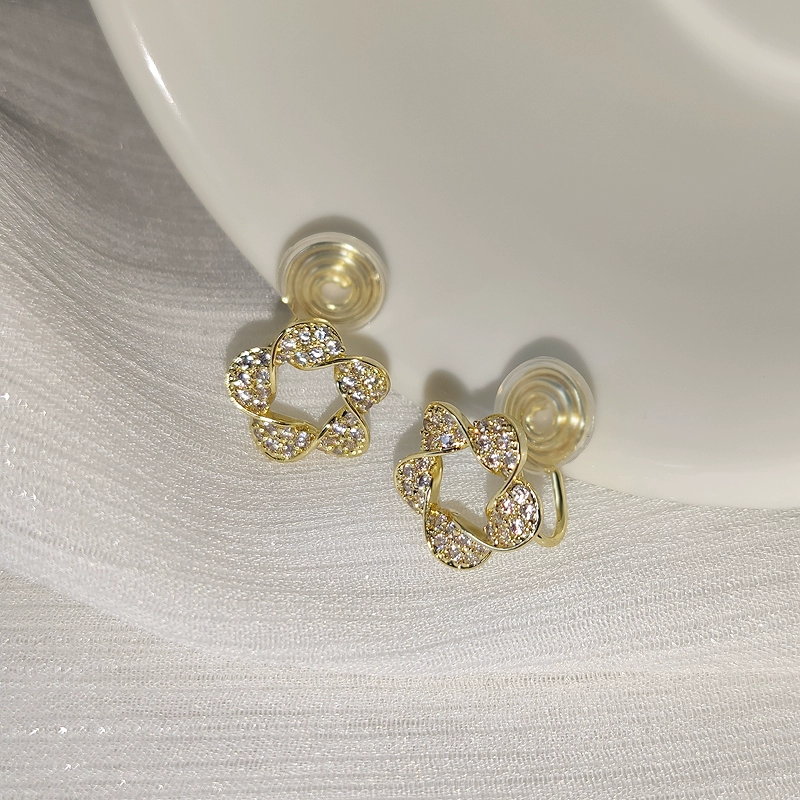 Korean version full of diamond flowers, hollow mosquito-repellent incense disc, no piercing ear clips, small and delicate fake earrings, painless, high-end trendy women