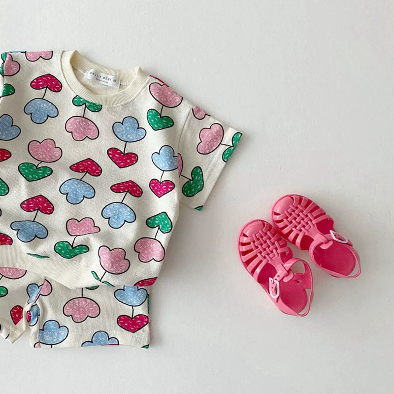 Korean version of ins infant and toddler baby cute cartoon casual suit summer style trendy short-sleeved T-shirt shorts two-piece set