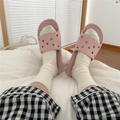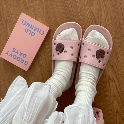 | nameOriginal | Korean version of ins trendy cute cartoon hole shoes for women summer indoor soft sole non-slip home use one-word bathing sandals and slippers |