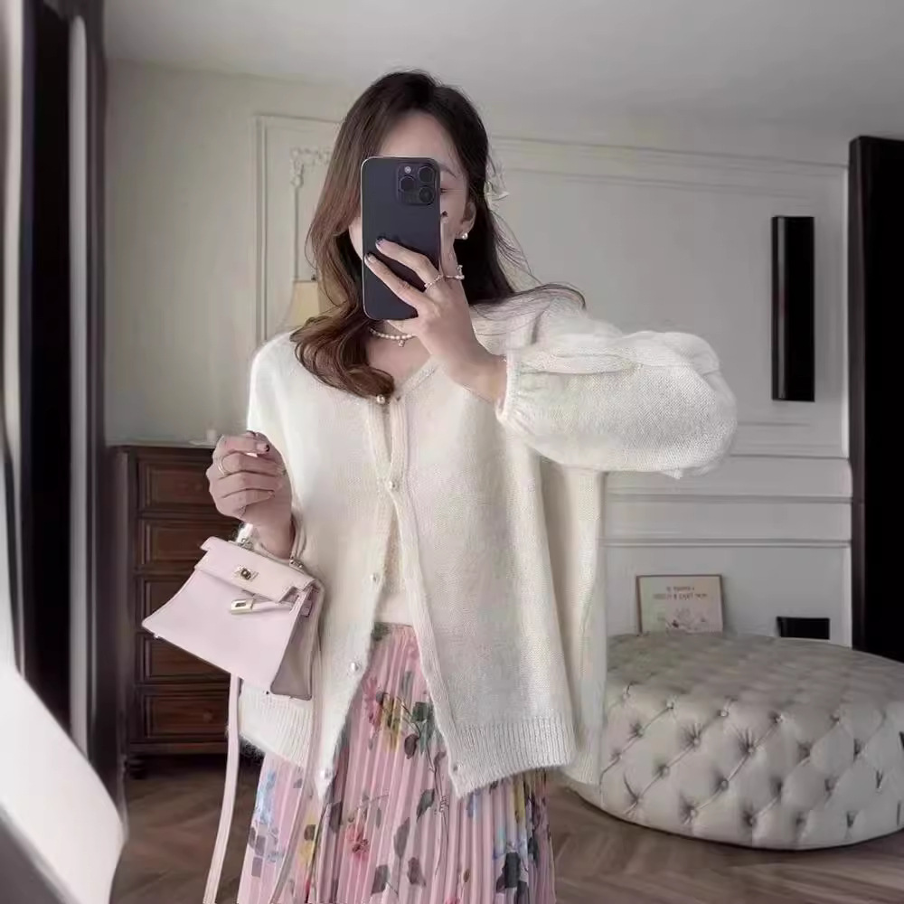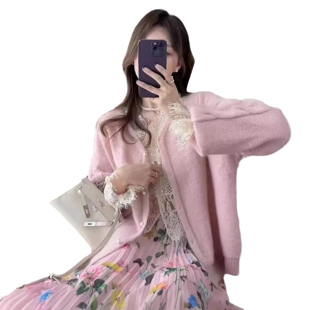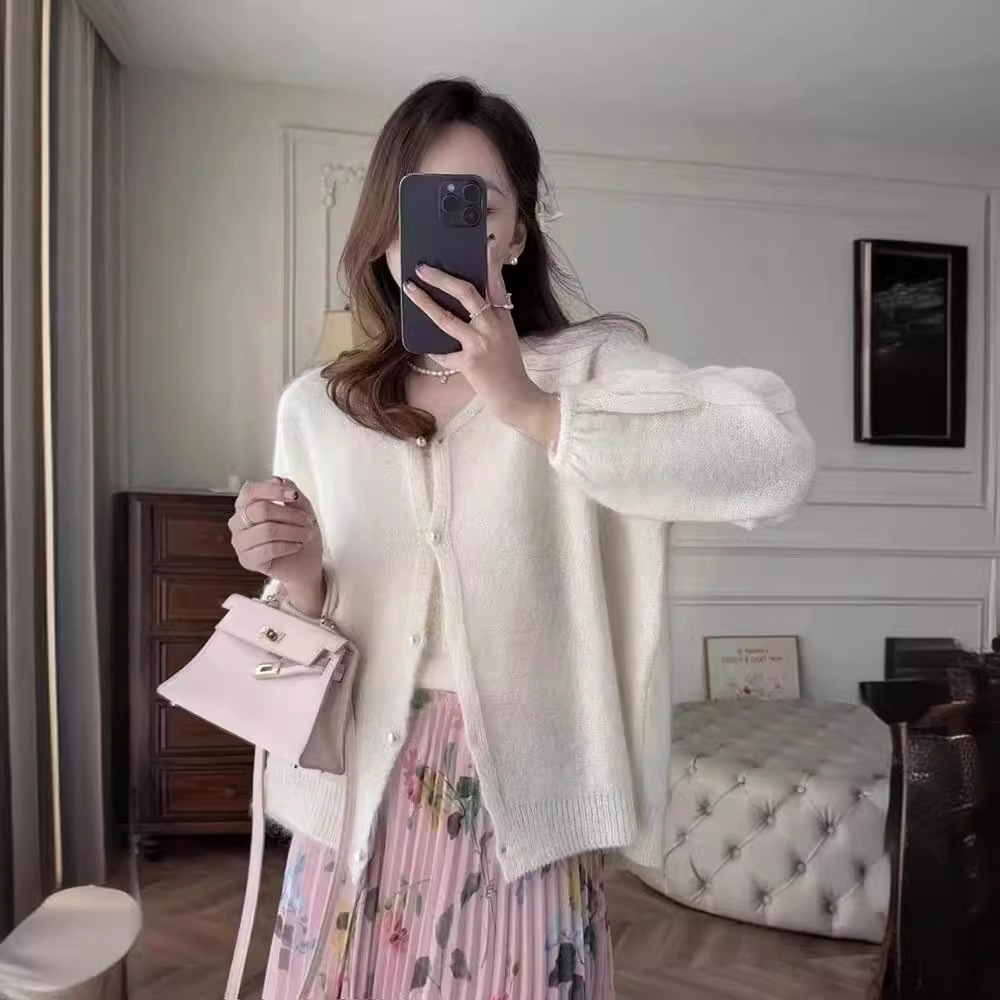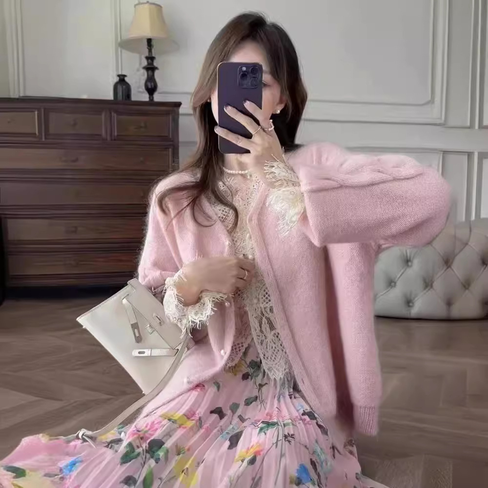 Korean version of lazy wind sweater women imitation mahair three-dimensional twisted lantern sleeve knitted cardigan jacket 158-828