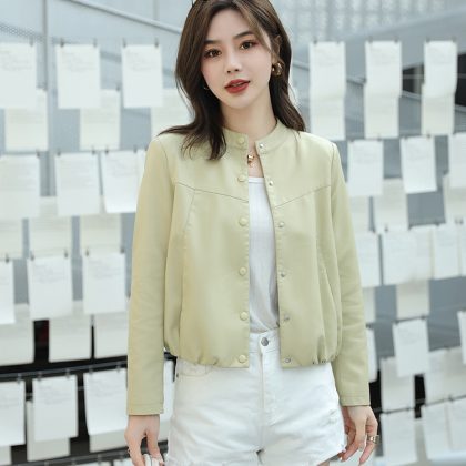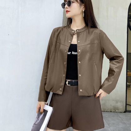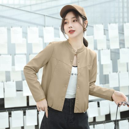 Korean version of leather women’s coat 2023 spring new ladies leather casual short wash leather women’s wholesale generation