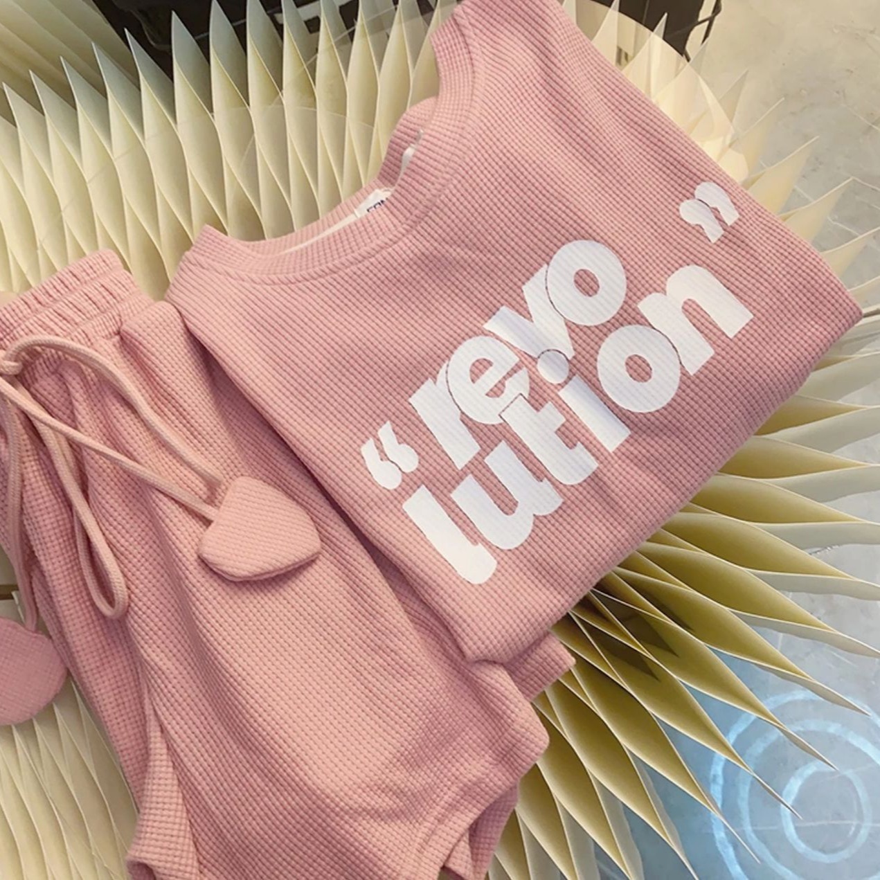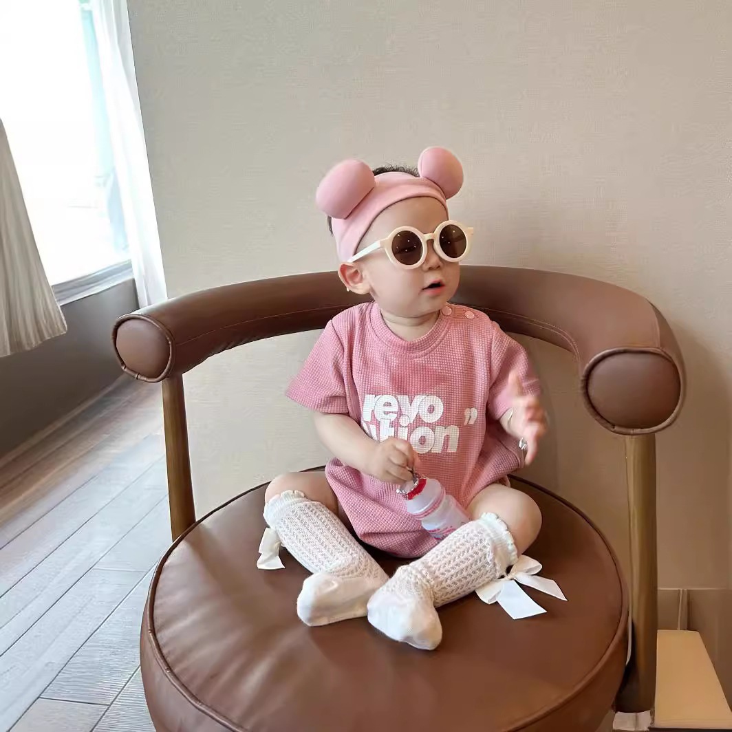 | nameOriginal | Korean version of parent-child summer new family of three baby pink letter short-sleeved T-shirt mother-daughter foreign-style two-piece suit. |