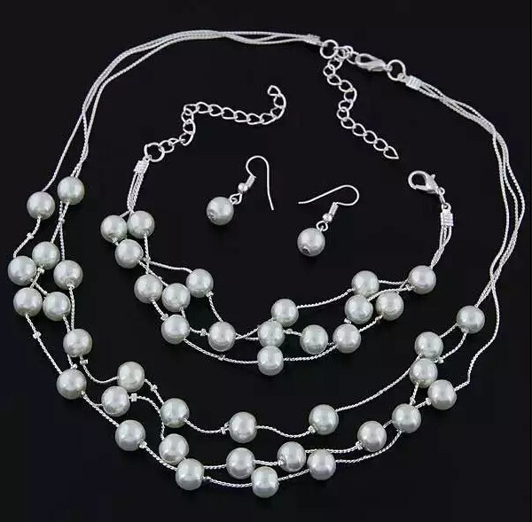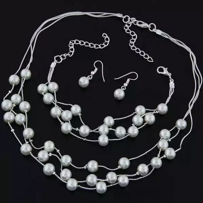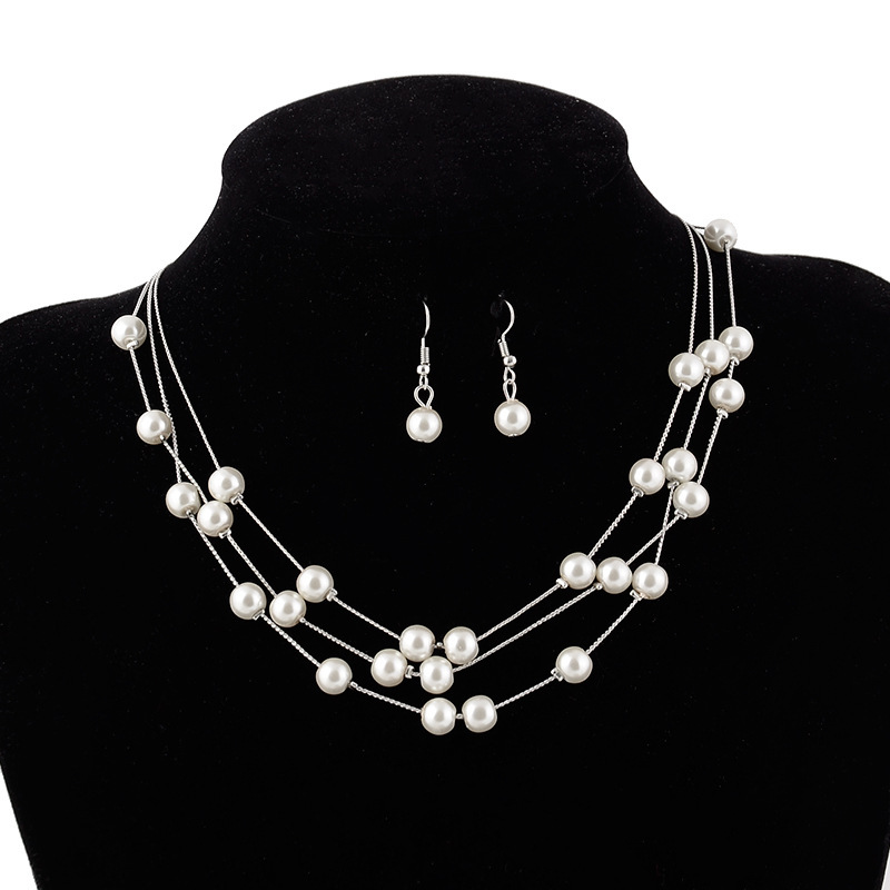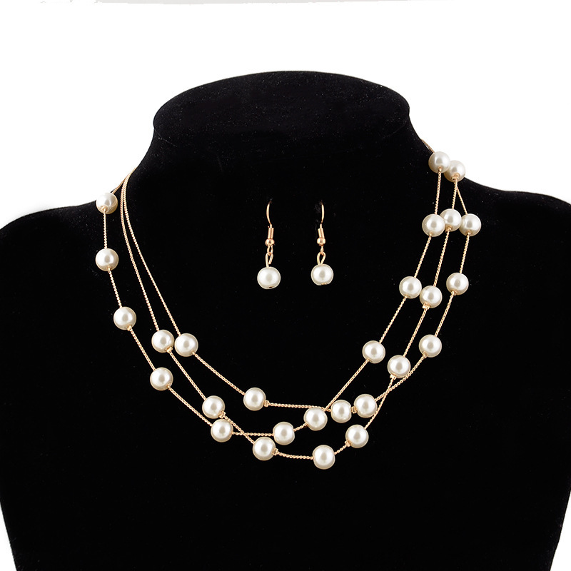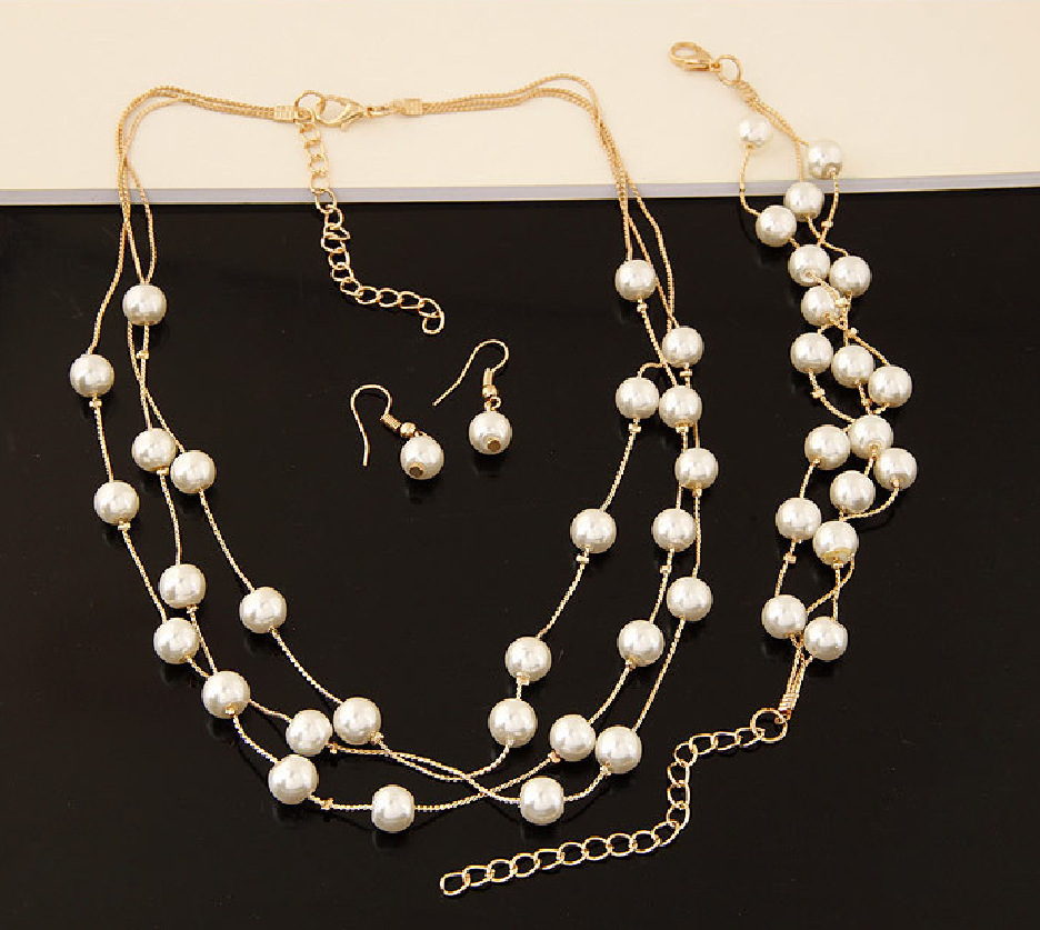 Korean version of the new beautiful bride jewelry multi-layer pearl necklace bracelet earrings three-piece wholesale CMT106