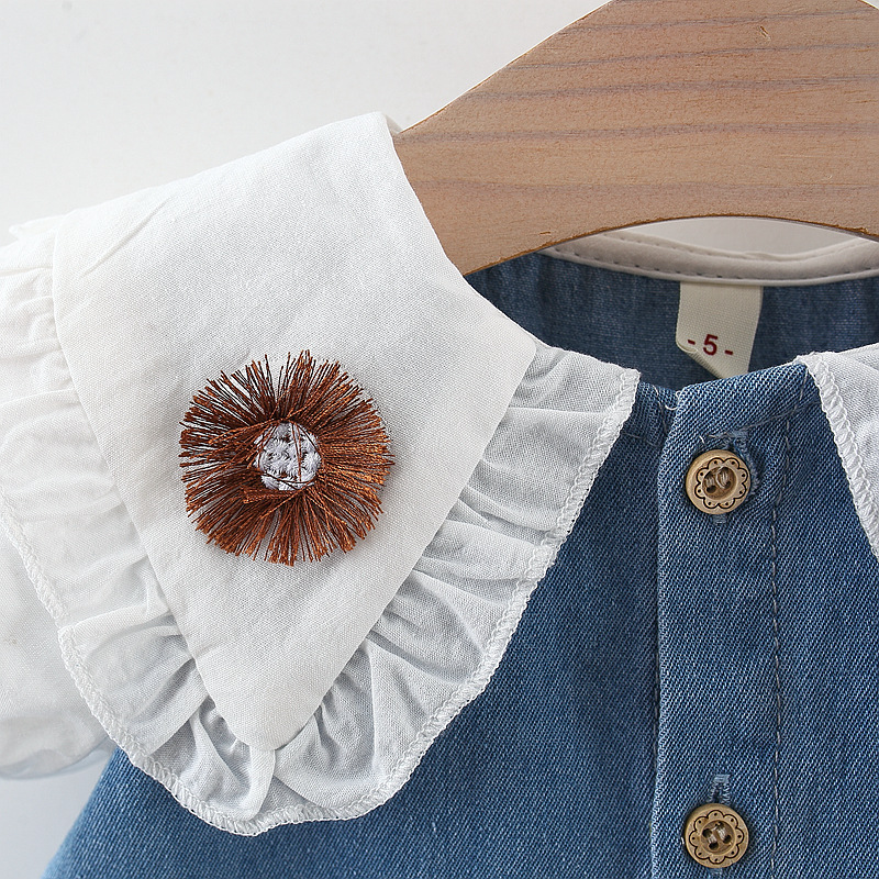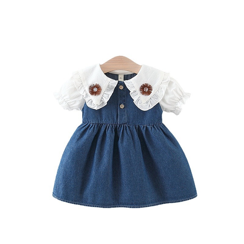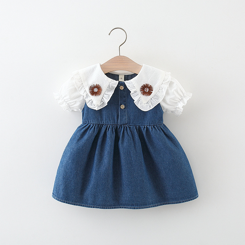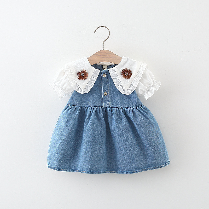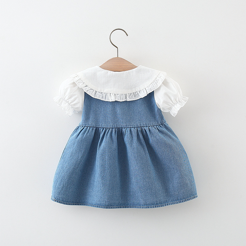 Korean version of the new denim stitching short-sleeved denim dress girl foreign-style one-year-old skirt weaving in foreign trade wholesale