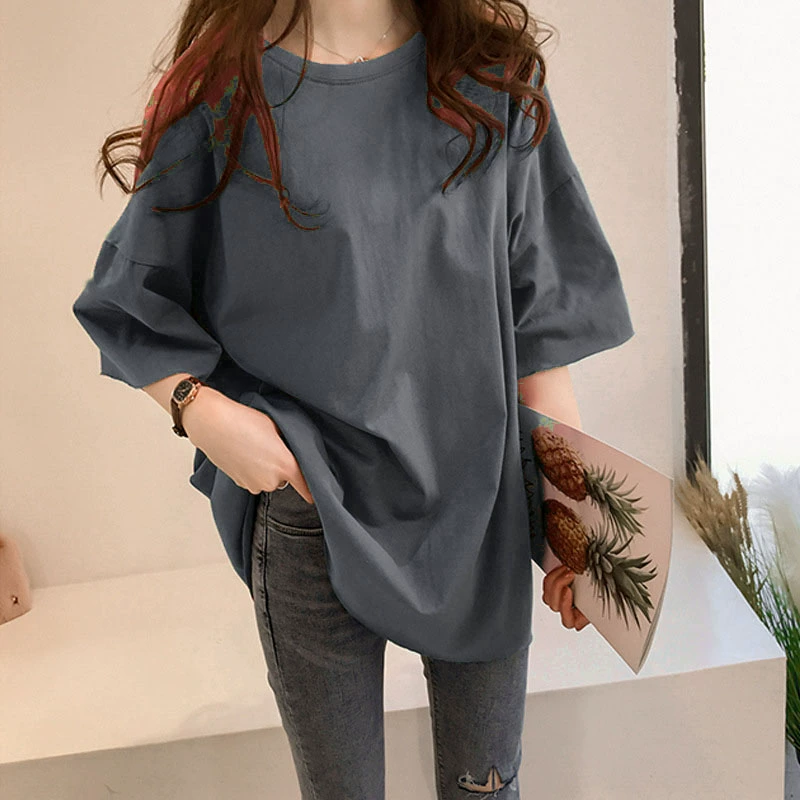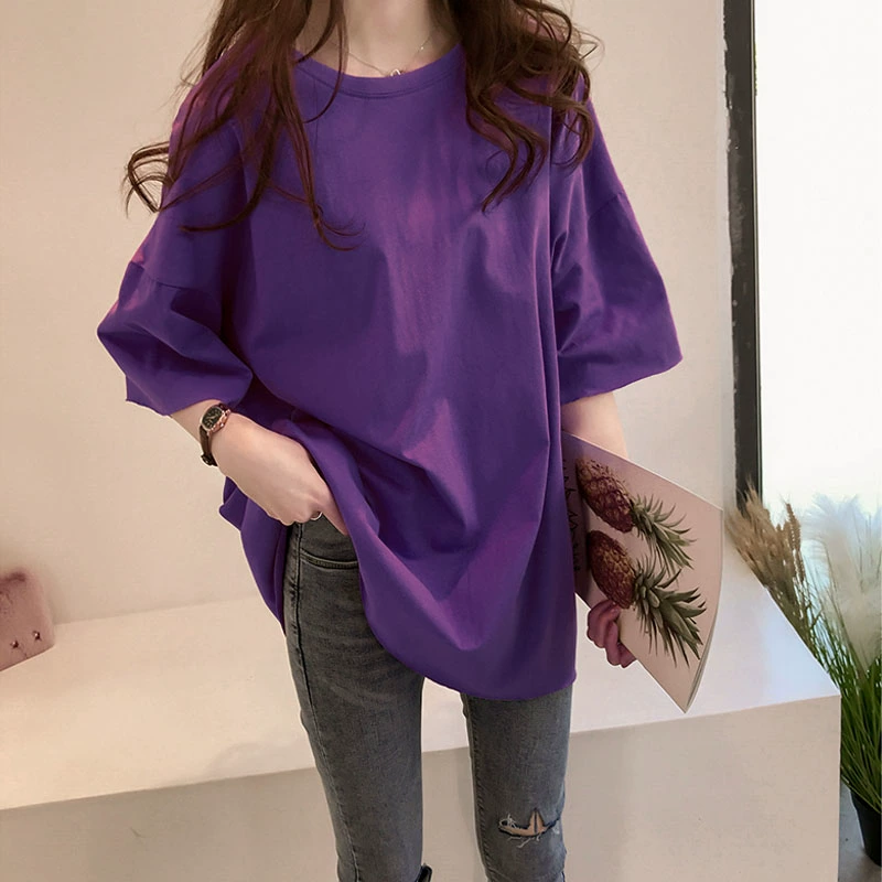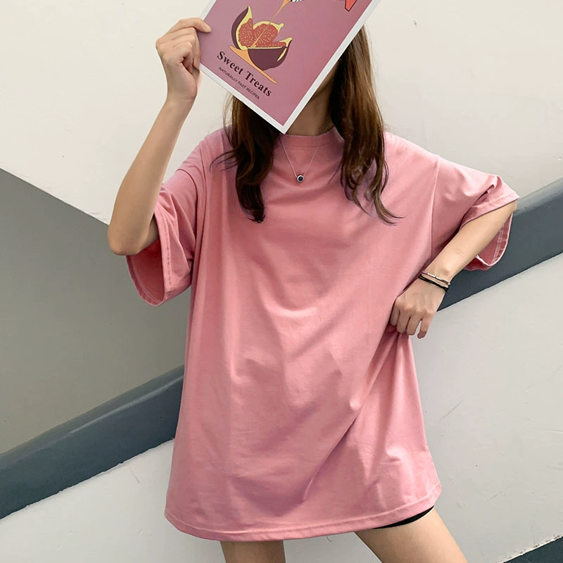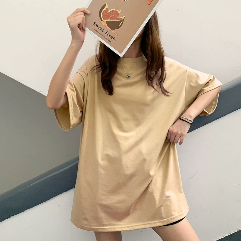 Korean version plus size 200 pounds loose pure black short-sleeved T-shirt